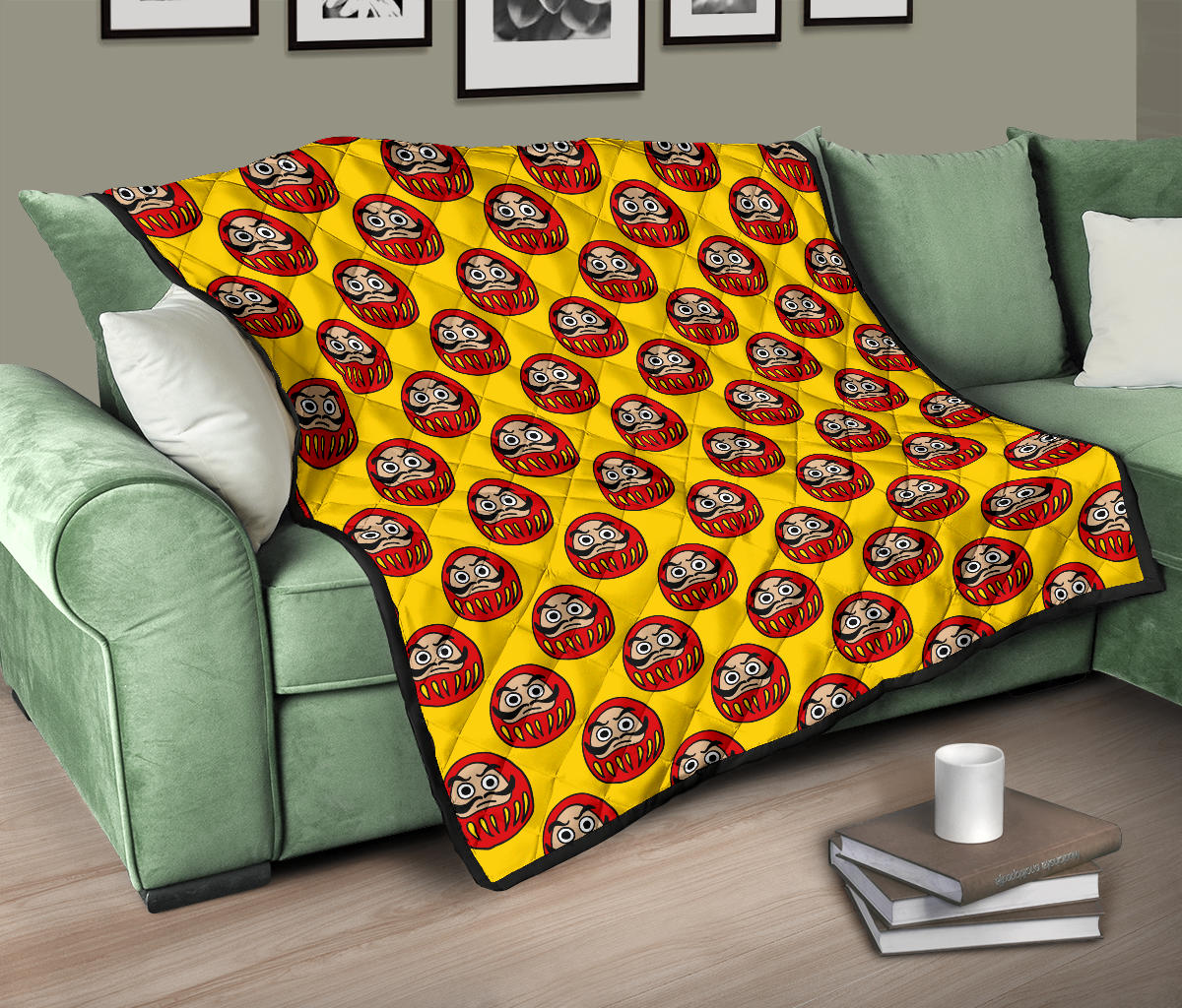 Daruma Japanese Wooden Doll Yellow Background Premium Quilt is a uniqued design and limited item. It made to order, hand printed, and sewn with love in our factory.