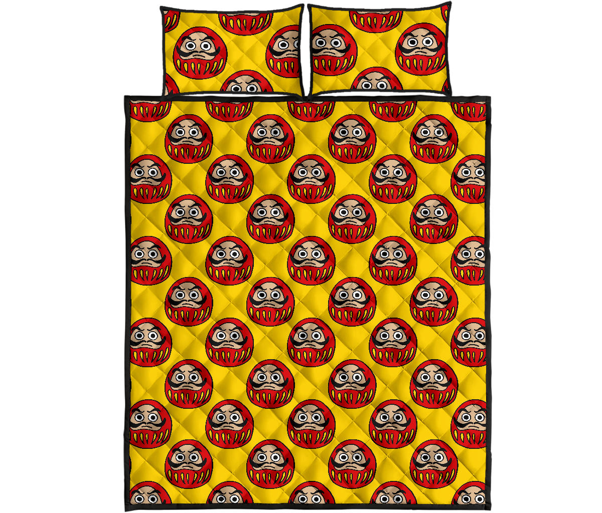 Daruma japanese wooden doll yellow background Quilt Bed Set