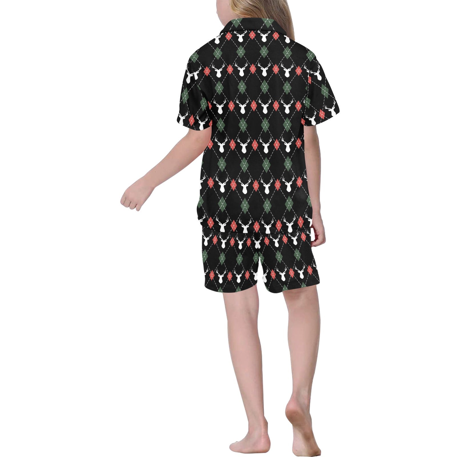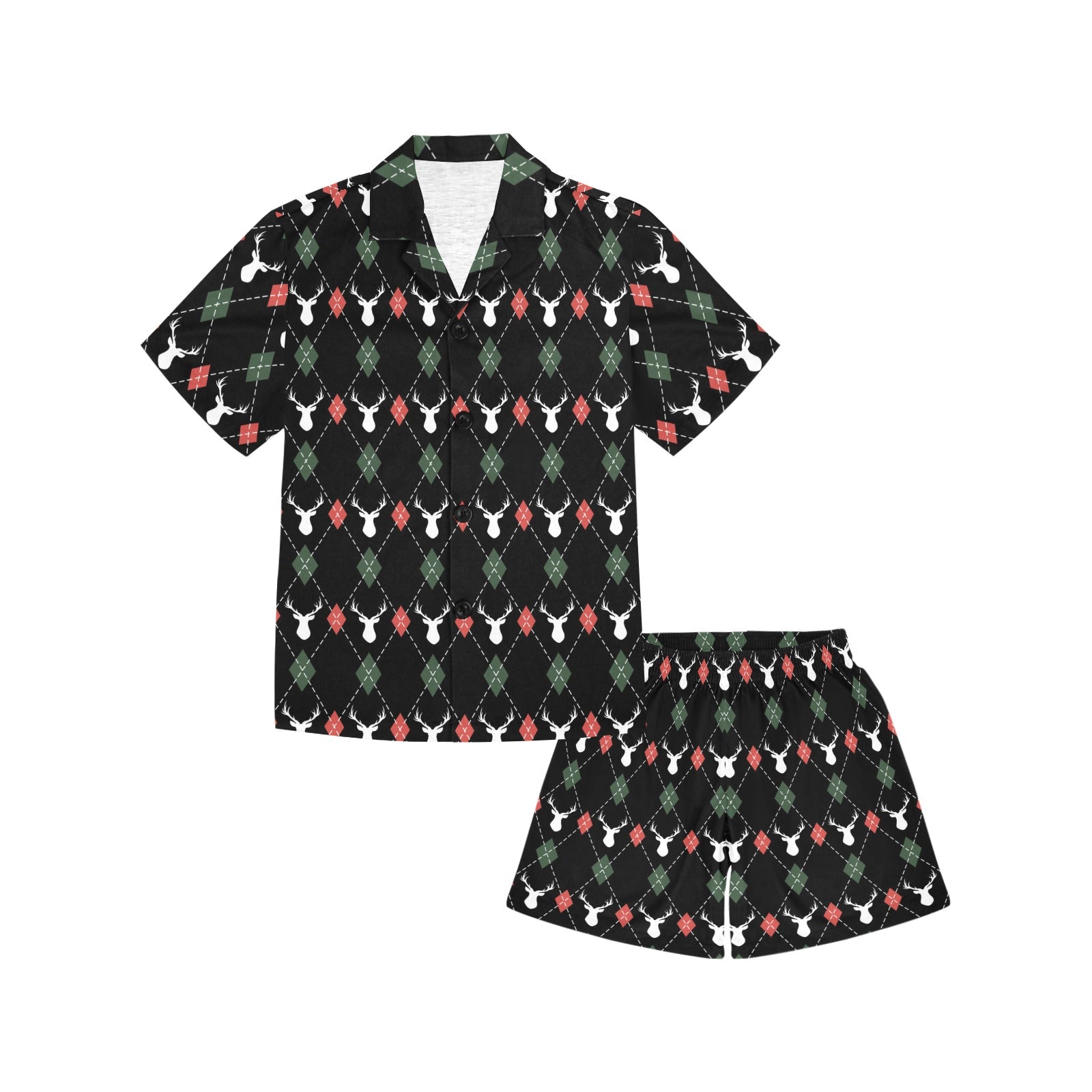 Deer Christmas new year pattern argyle Kids' Boys' Girls' V-Neck Short Pajama Set