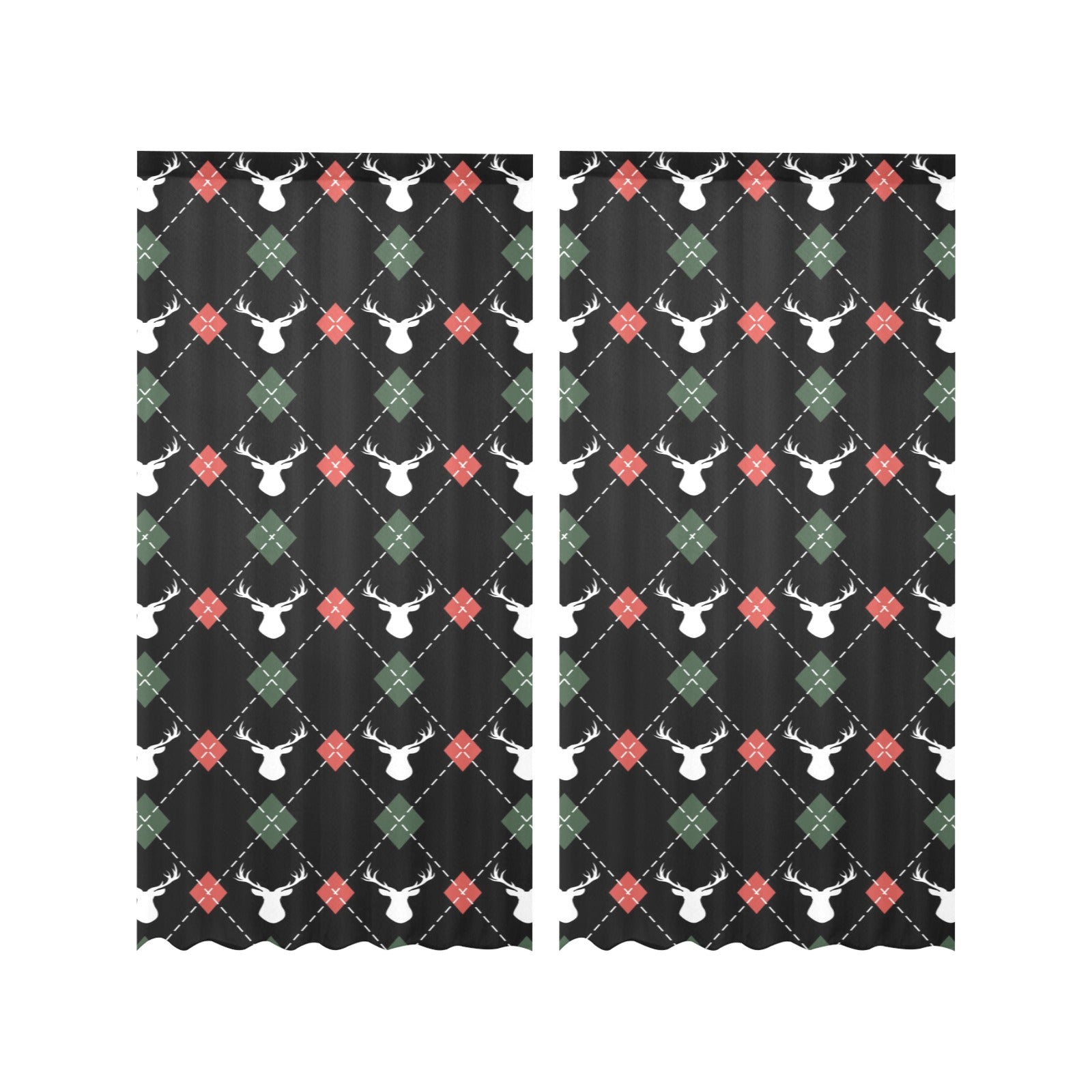 Deer Christmas new year pattern argyle Gauze Curtain