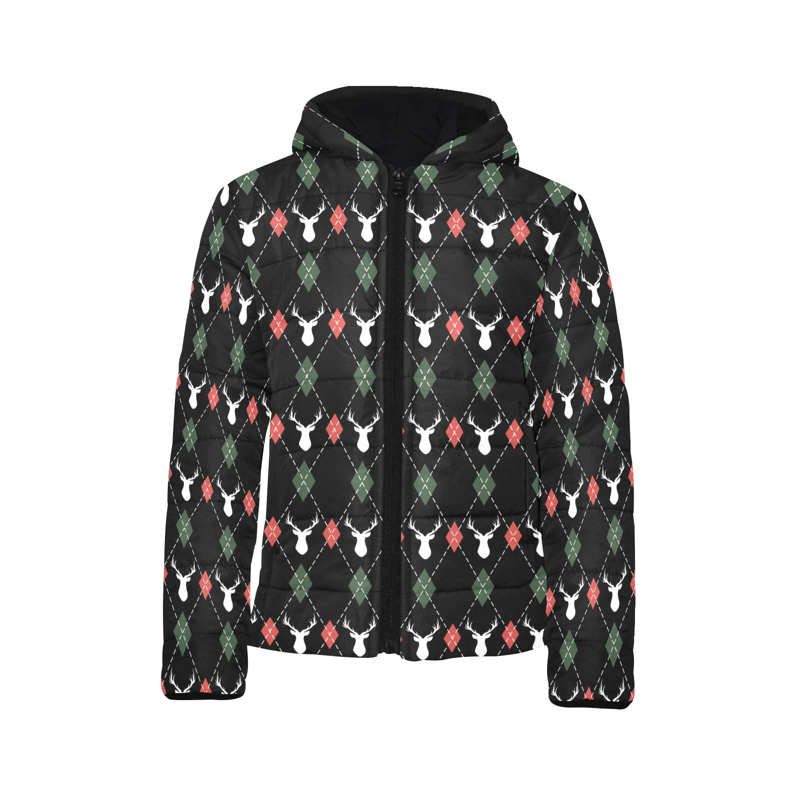 Deer Christmas new year pattern argyle Kids' Boys' Girls' Padded Hooded Jacket