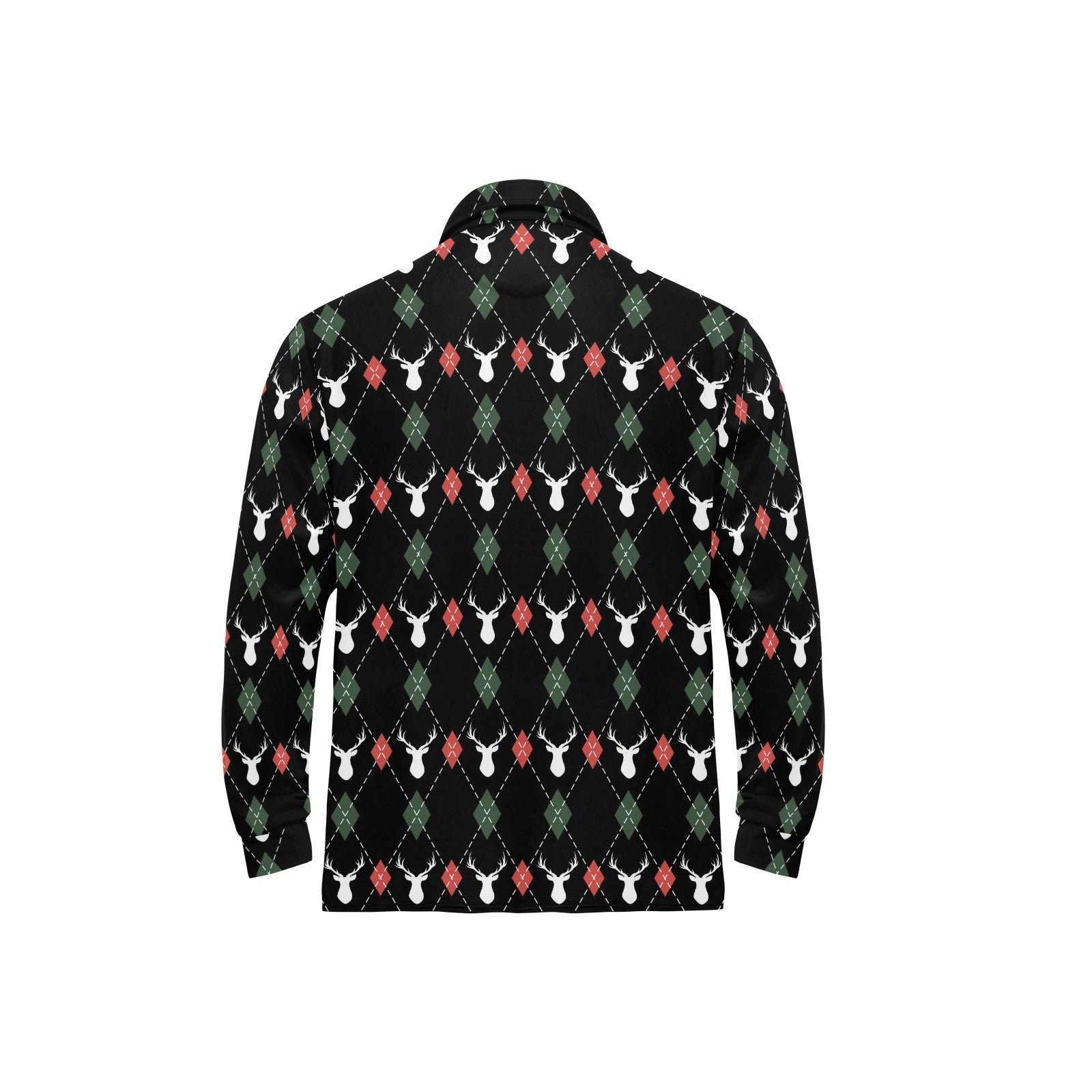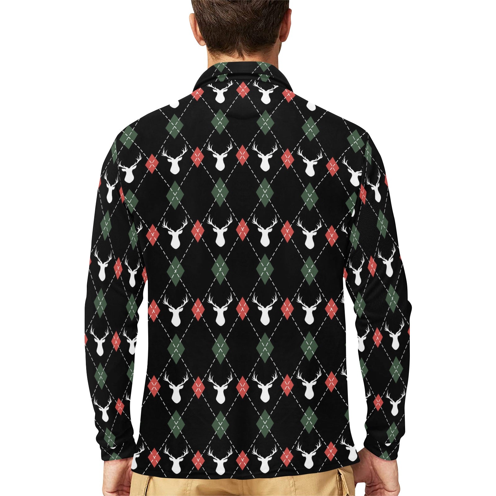 Deer Christmas new year pattern argyle Men's Long Sleeve Polo Shirt