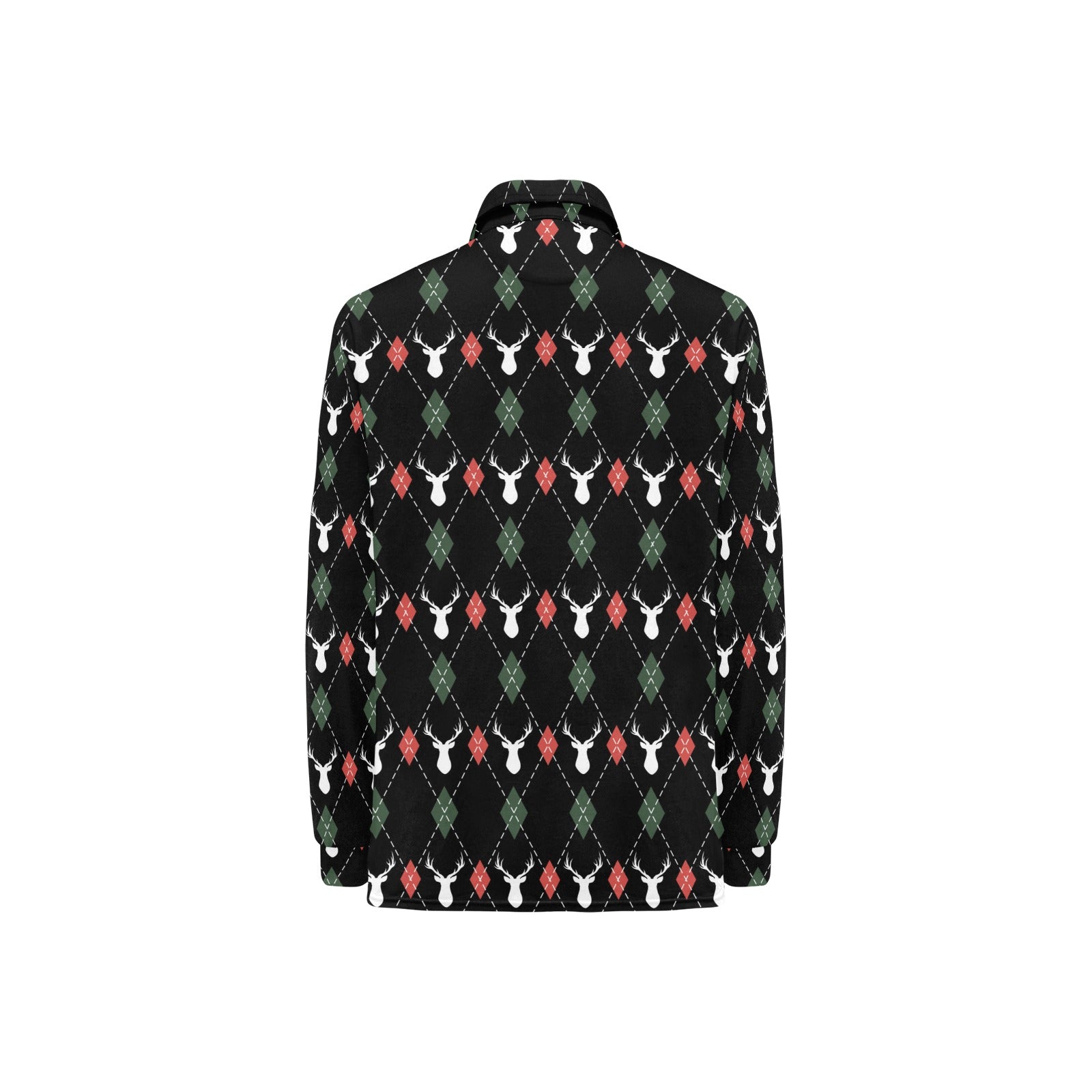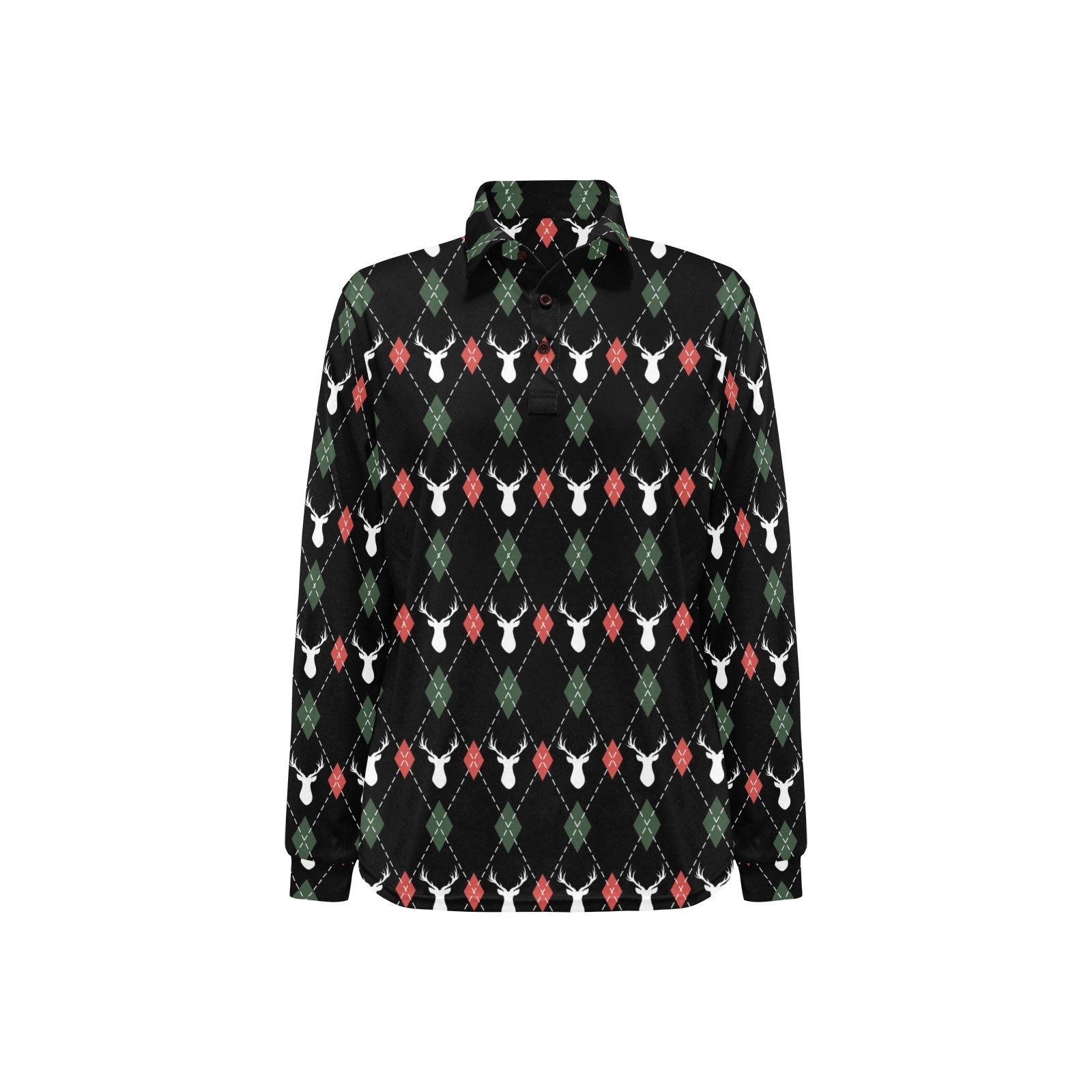 Deer Christmas new year pattern argyle Women's Long Sleeve Polo Shirt