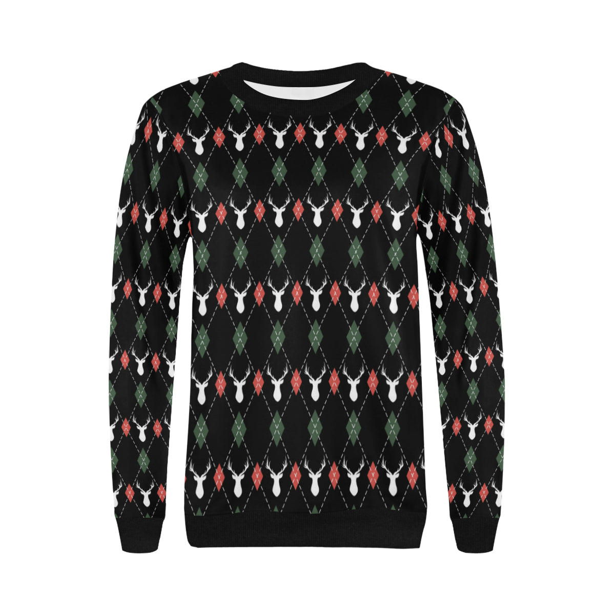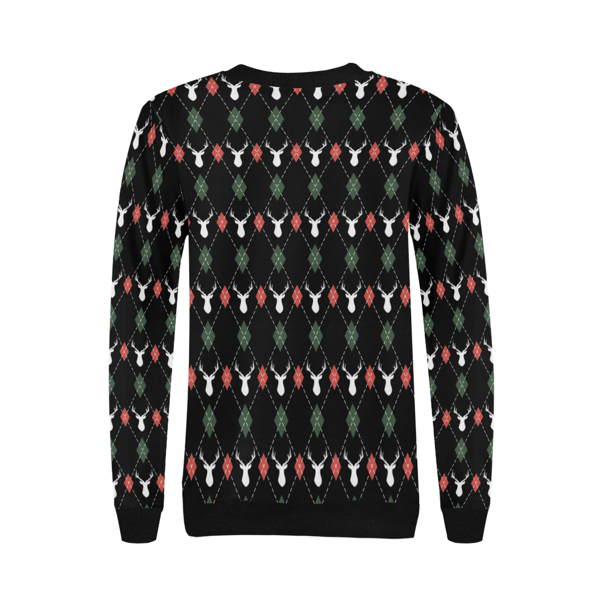 Deer Christmas new year pattern argyle Women's Crew Neck Sweatshirt