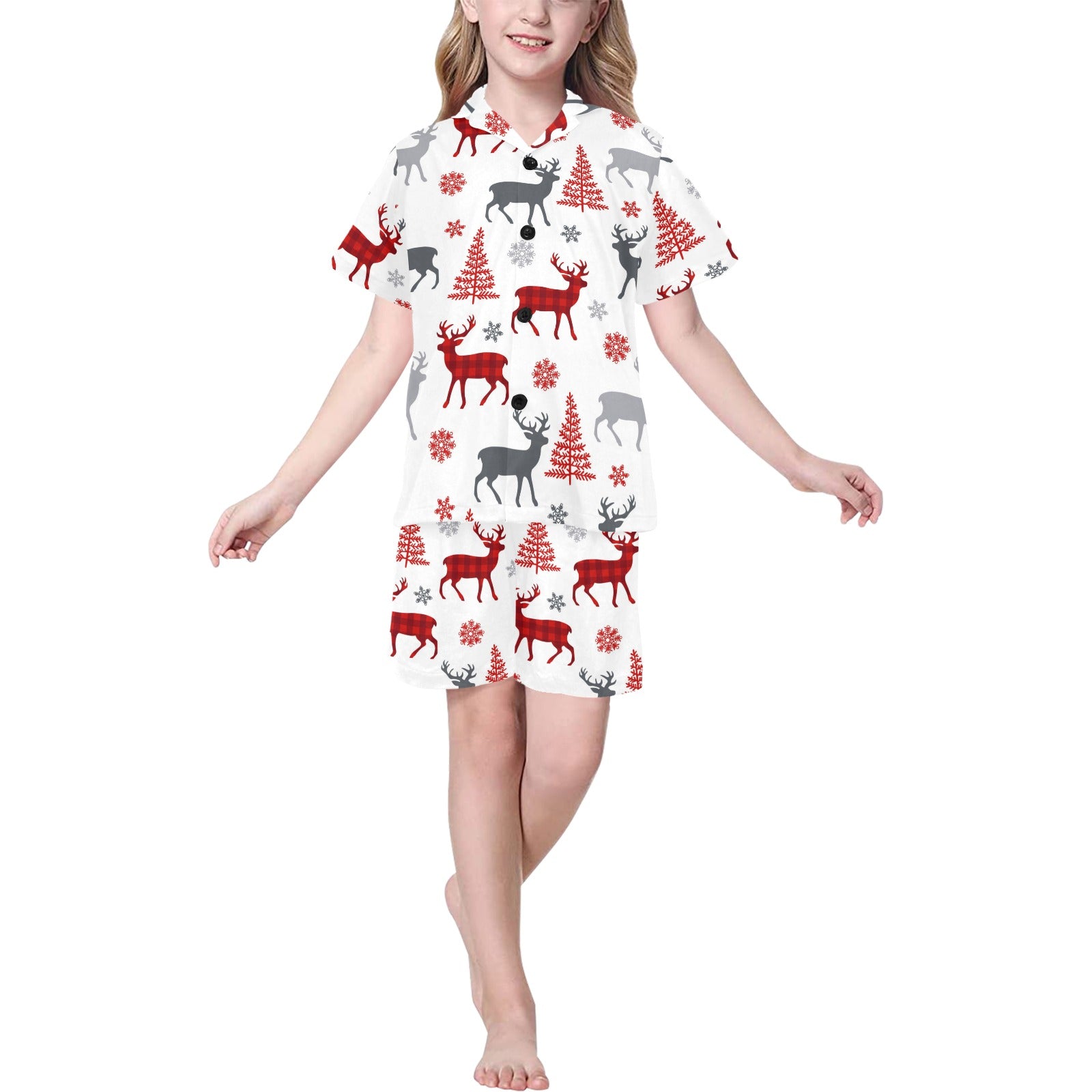 Deer tree snowflakes chrismas pattern Kids' Boys' Girls' V-Neck Short Pajama Set