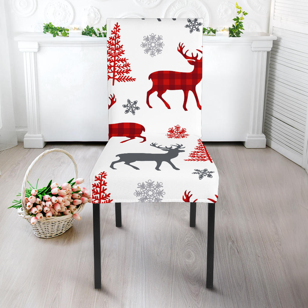Deer Tree Snowflakes Chrismas Pattern Dining Chair Slipcover