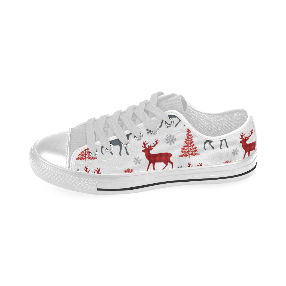 Deer tree snowflakes chrismas pattern Men's Low Top Canvas Shoes White