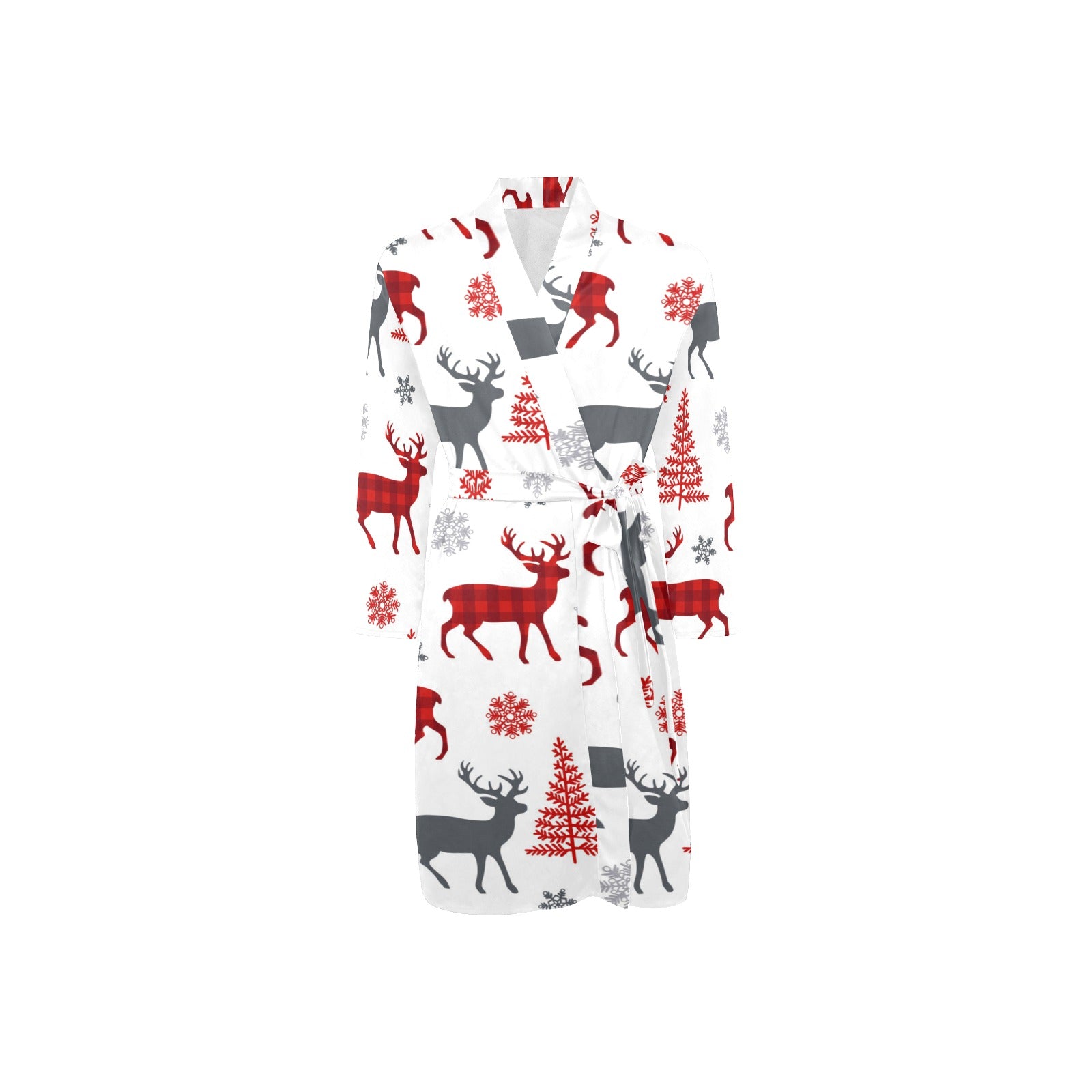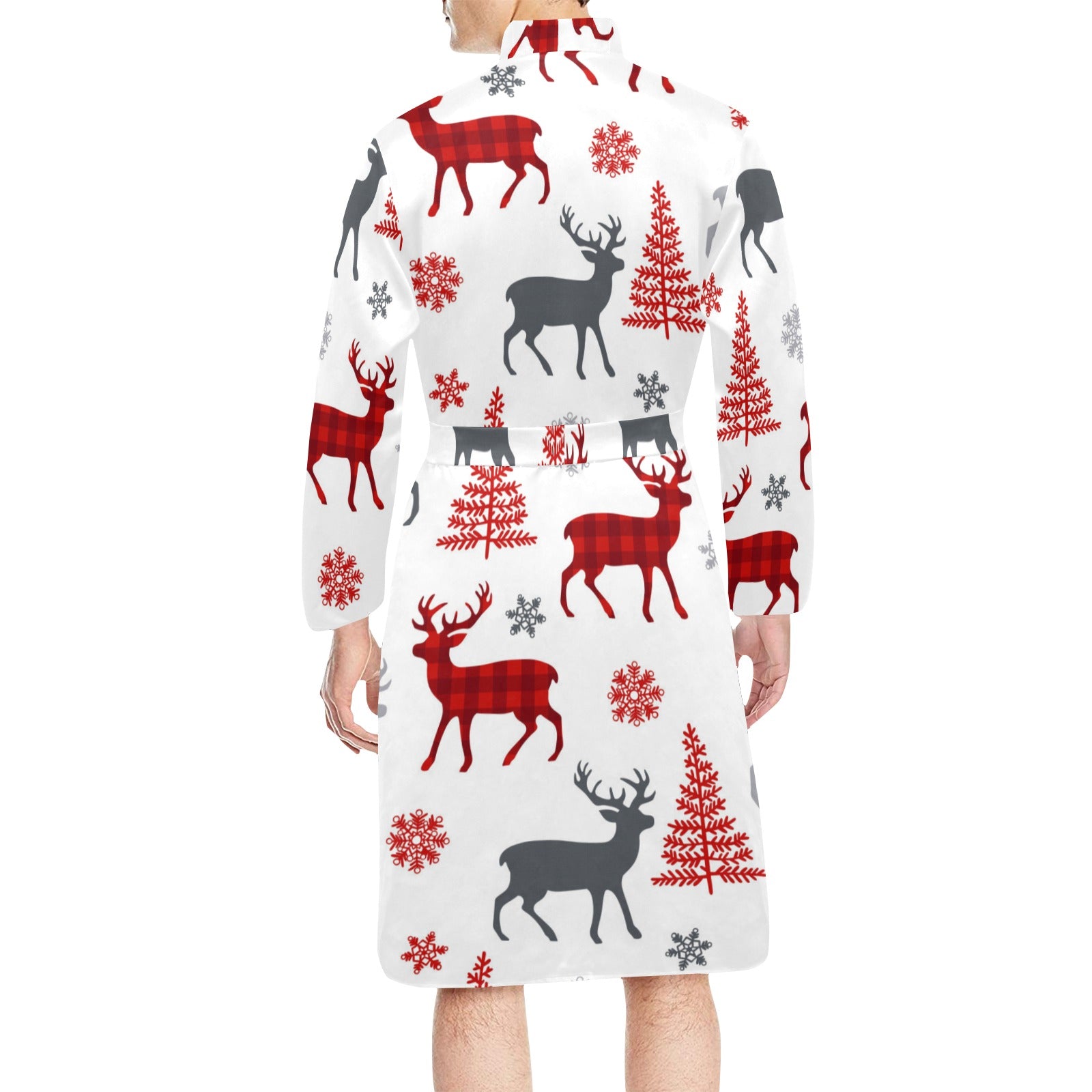 Deer tree snowflakes chrismas pattern Men's Long Sleeve Belted Night Robe