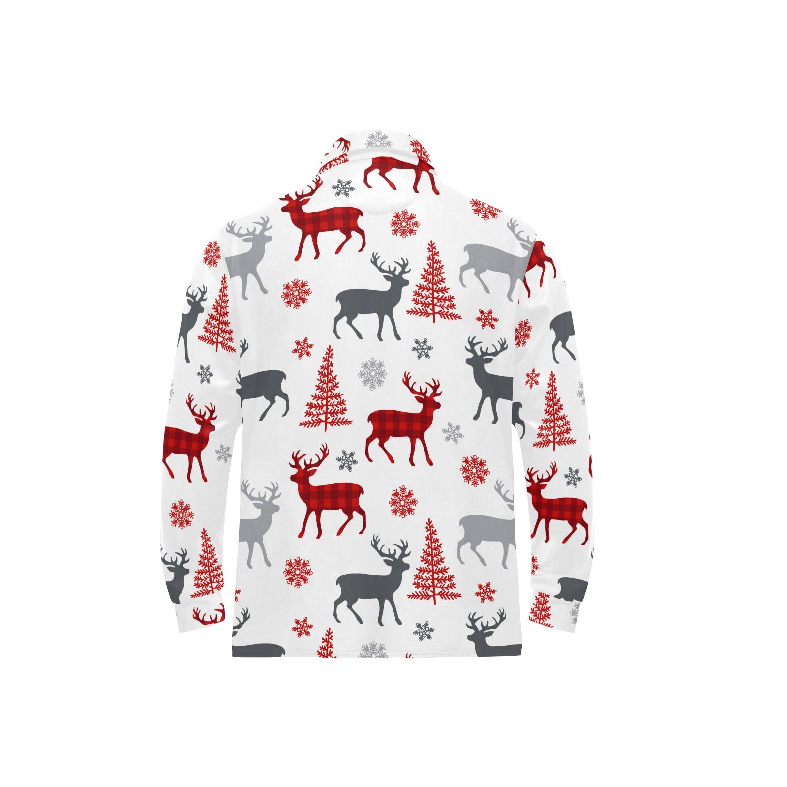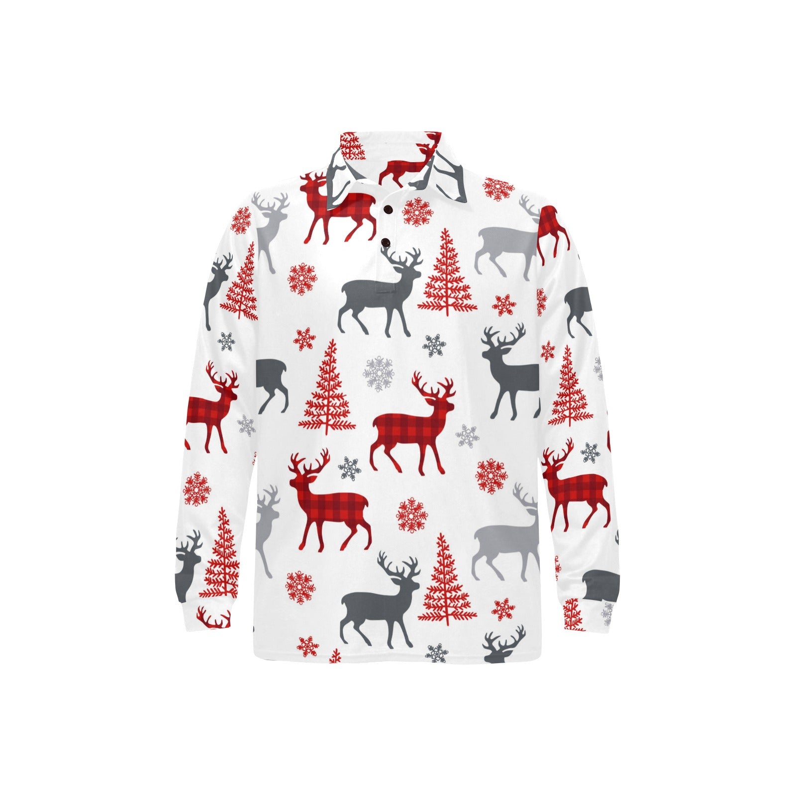 Deer tree snowflakes chrismas pattern Men's Long Sleeve Polo Shirt