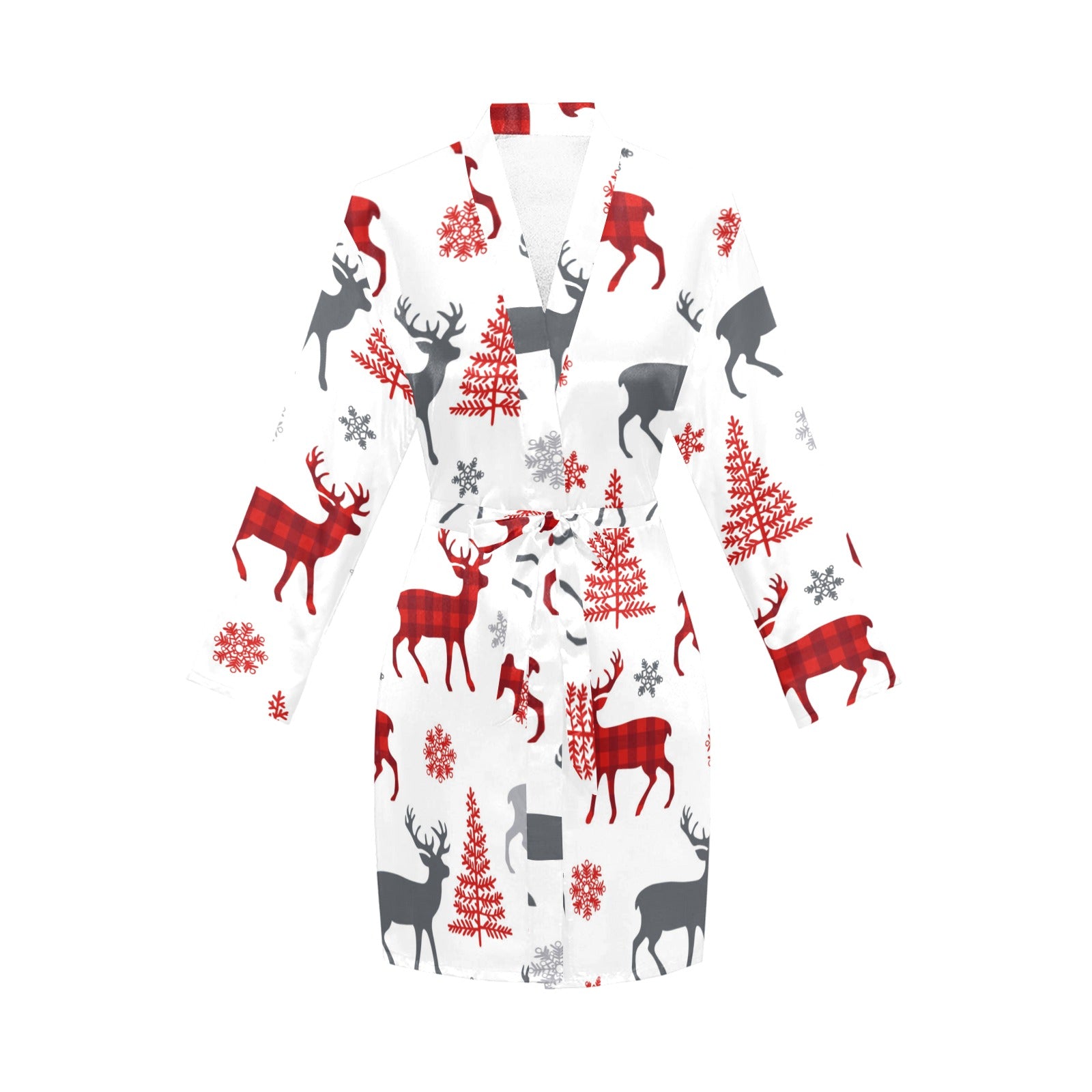 Deer tree snowflakes chrismas pattern Women's Long Sleeve Belted Night Robe