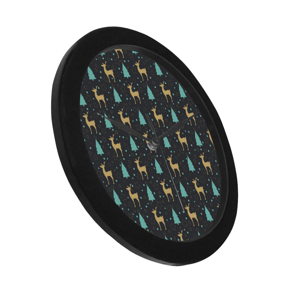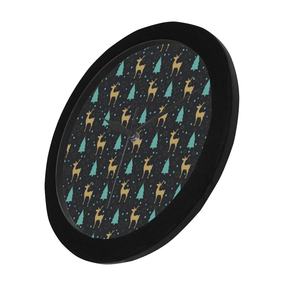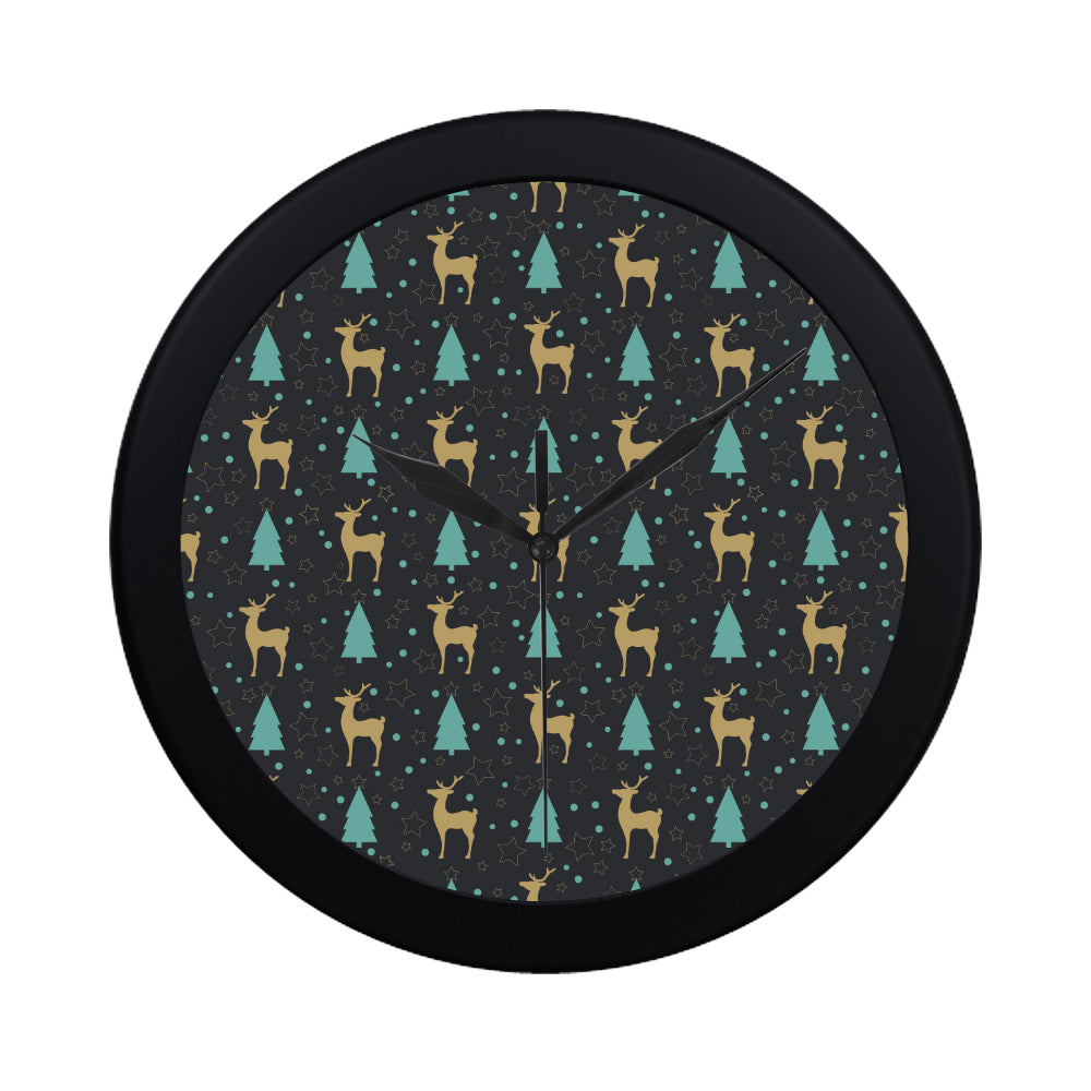 Deers star tree pattern Elegant Black Wall Clock
