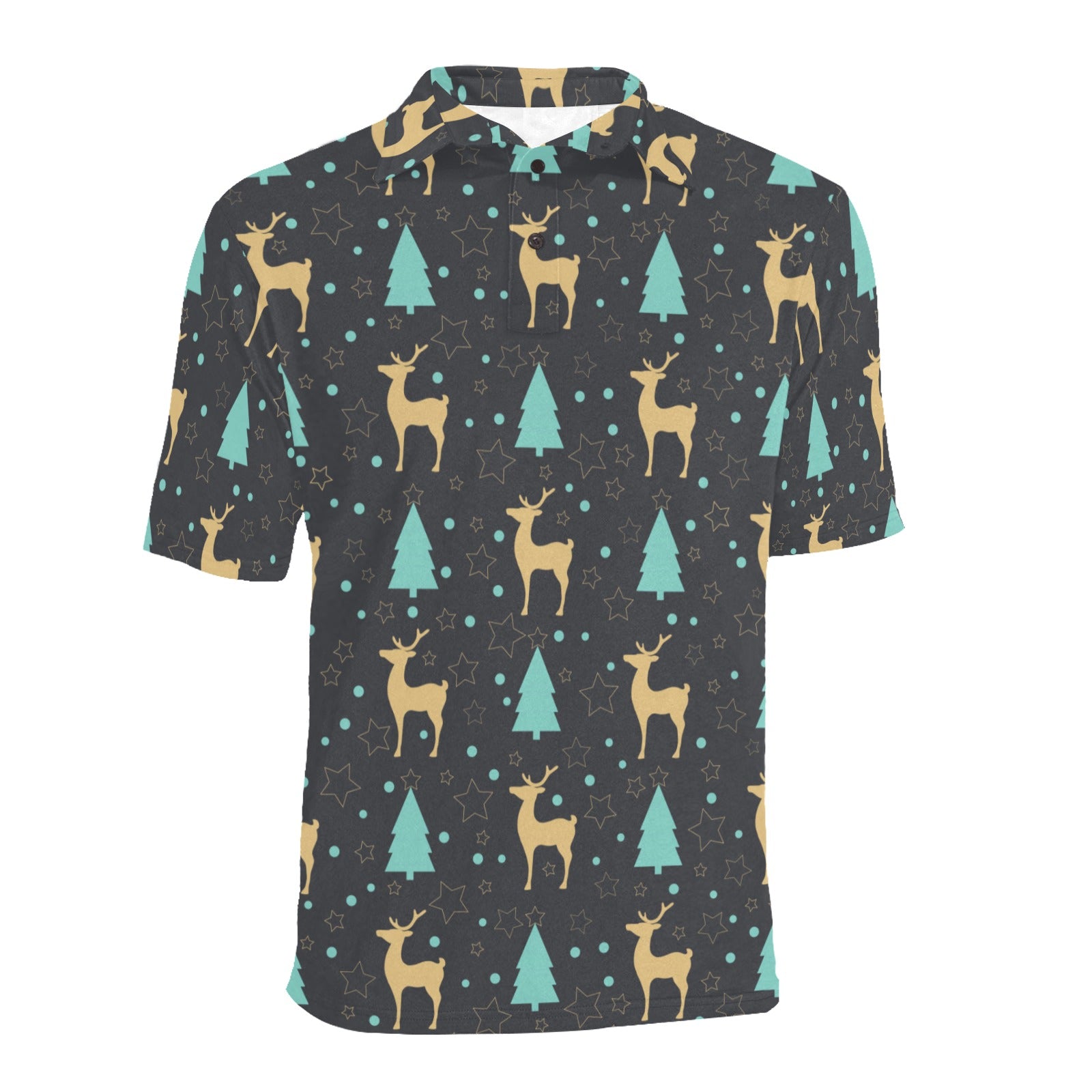 Deers star tree pattern Men's All Over Print Polo Shirt