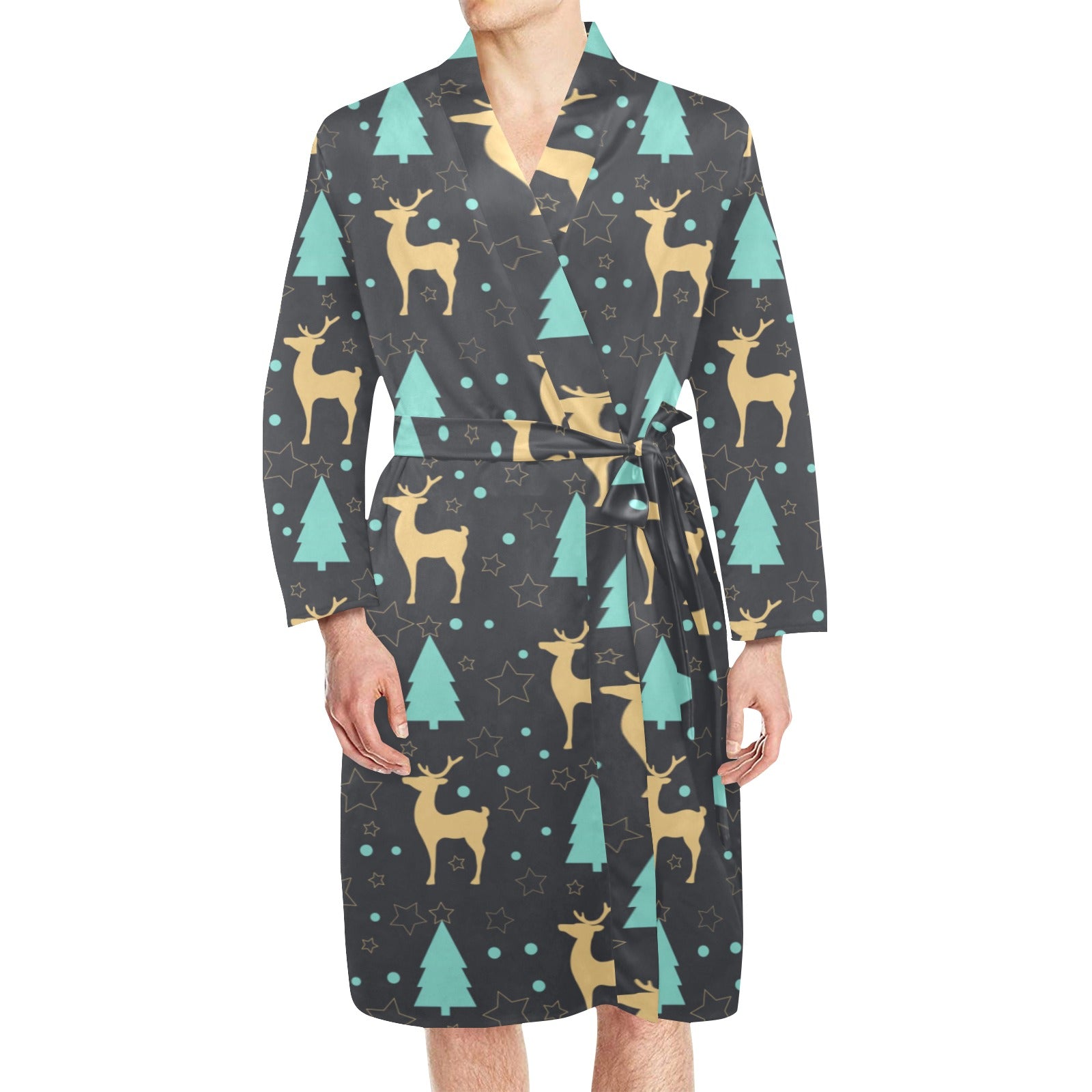 Deers star tree pattern Men's Long Sleeve Belted Night Robe