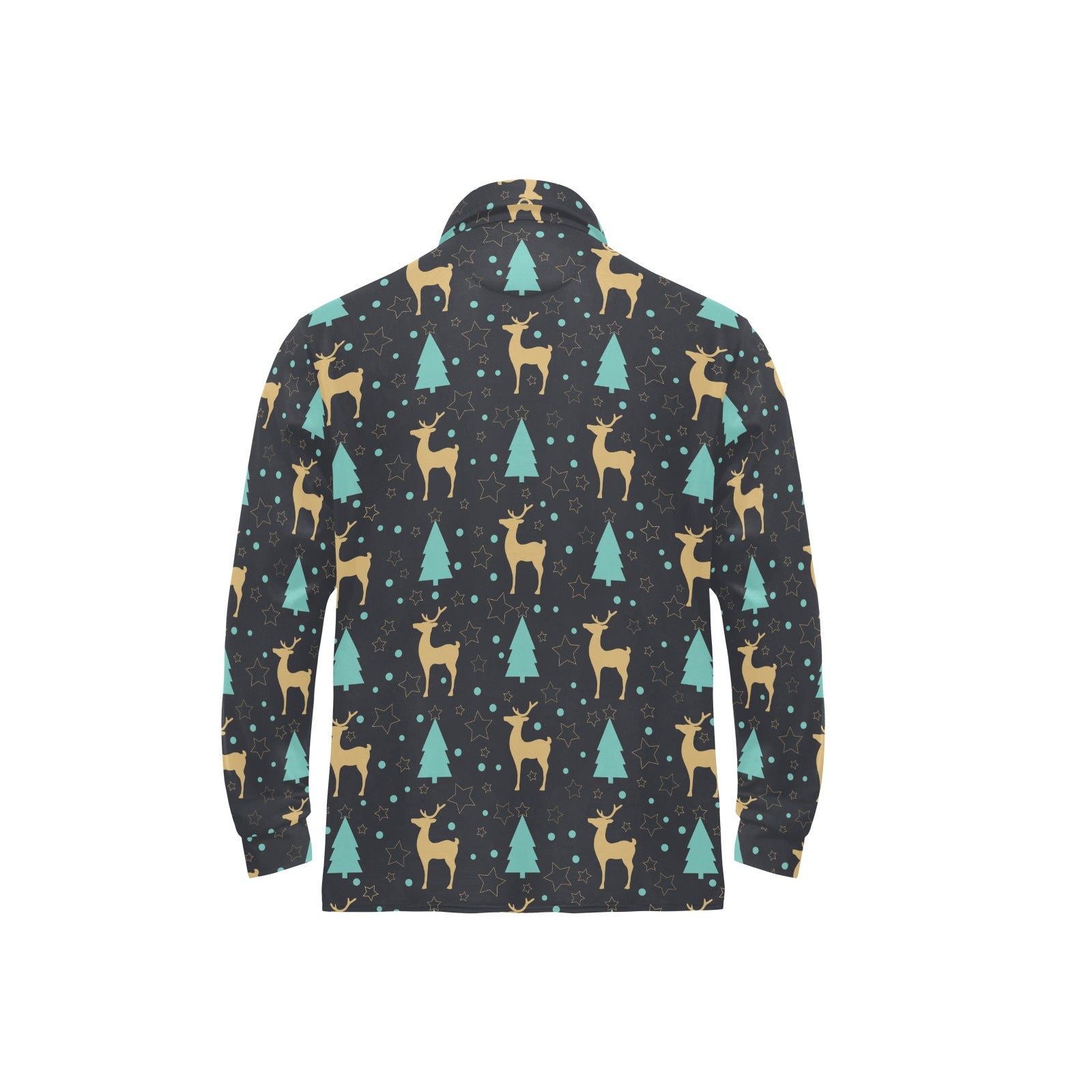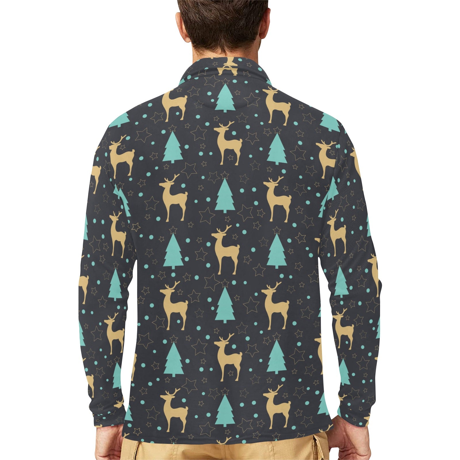 Deers star tree pattern Men's Long Sleeve Polo Shirt