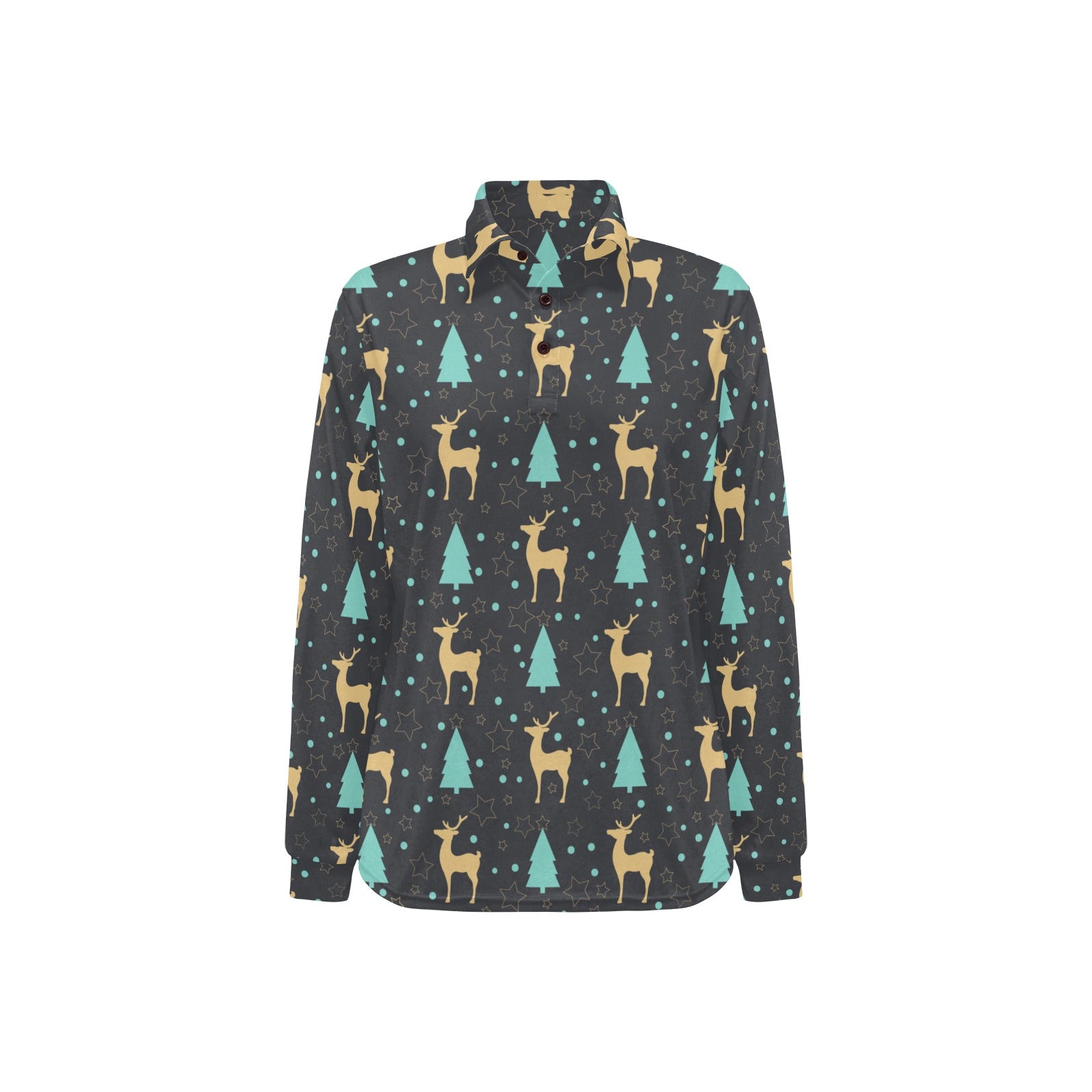 Deers star tree pattern Women's Long Sleeve Polo Shirt