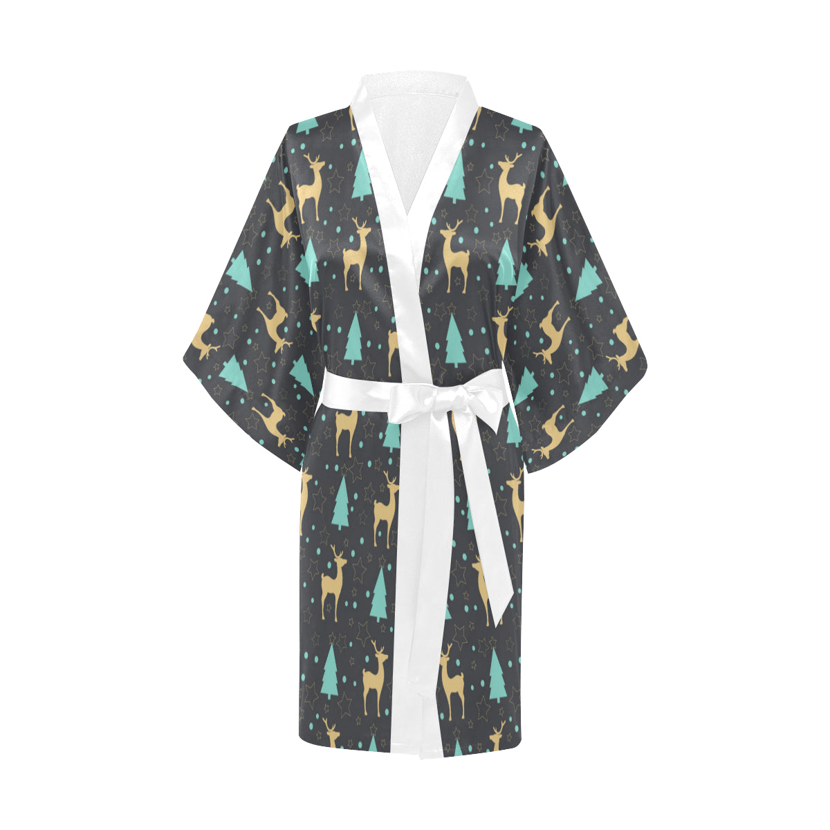 Deers star tree pattern Women's Short Kimono Robe is a uniqued design and limited item. It made to order, hand printed, and sewn with love in our factory.