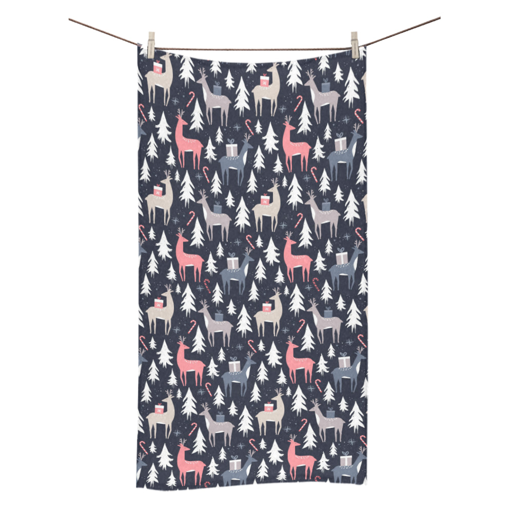 Deers Winter Christmas pattern Bath Towel 30"x56" is a uniqued design and limited item. It made to order, hand printed, and sewn with love in our factory.