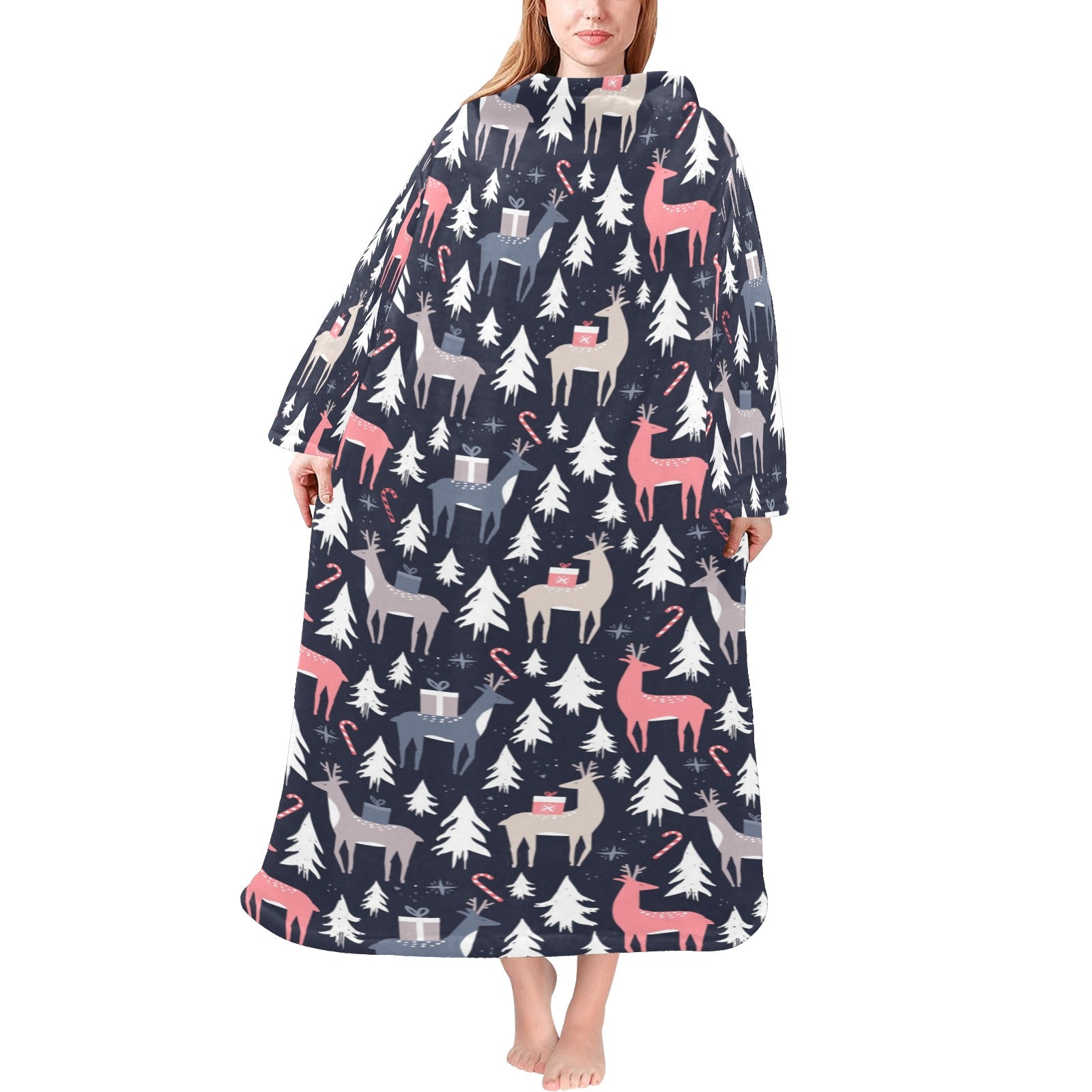 Deers Winter Christmas pattern Blanket Robe with Sleeves