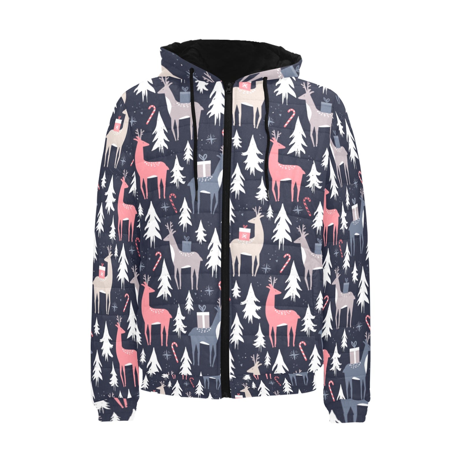 Deers Winter Christmas pattern Men's Padded Hooded Jacket