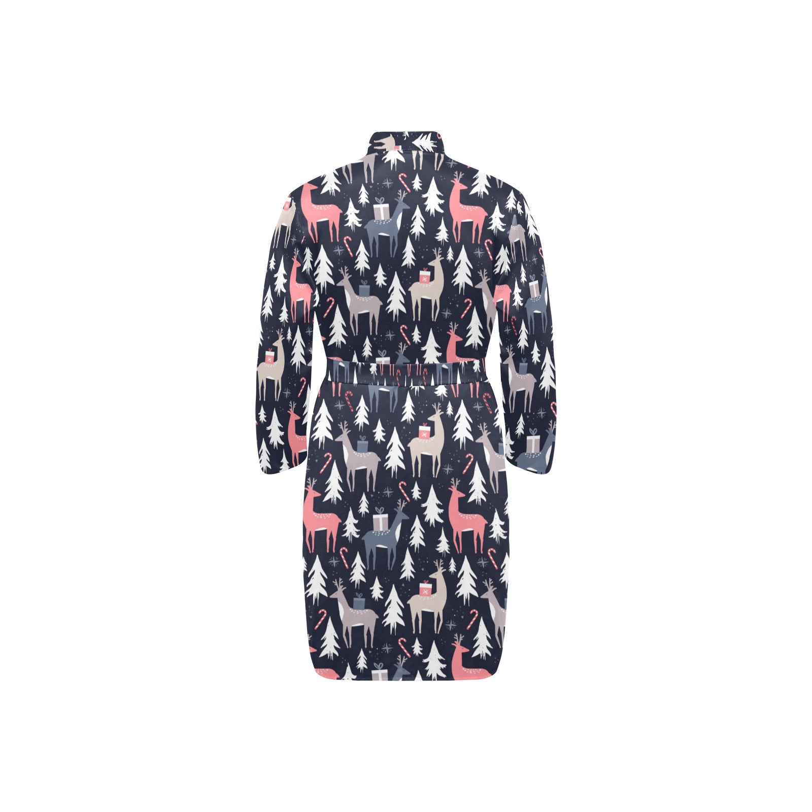 Deers Winter Christmas pattern Men's Long Sleeve Belted Night Robe