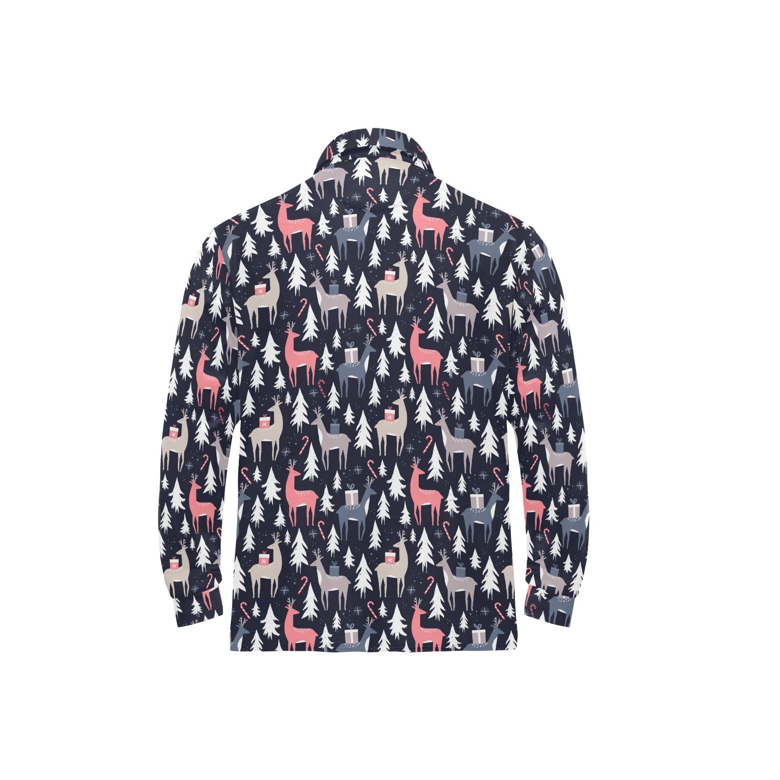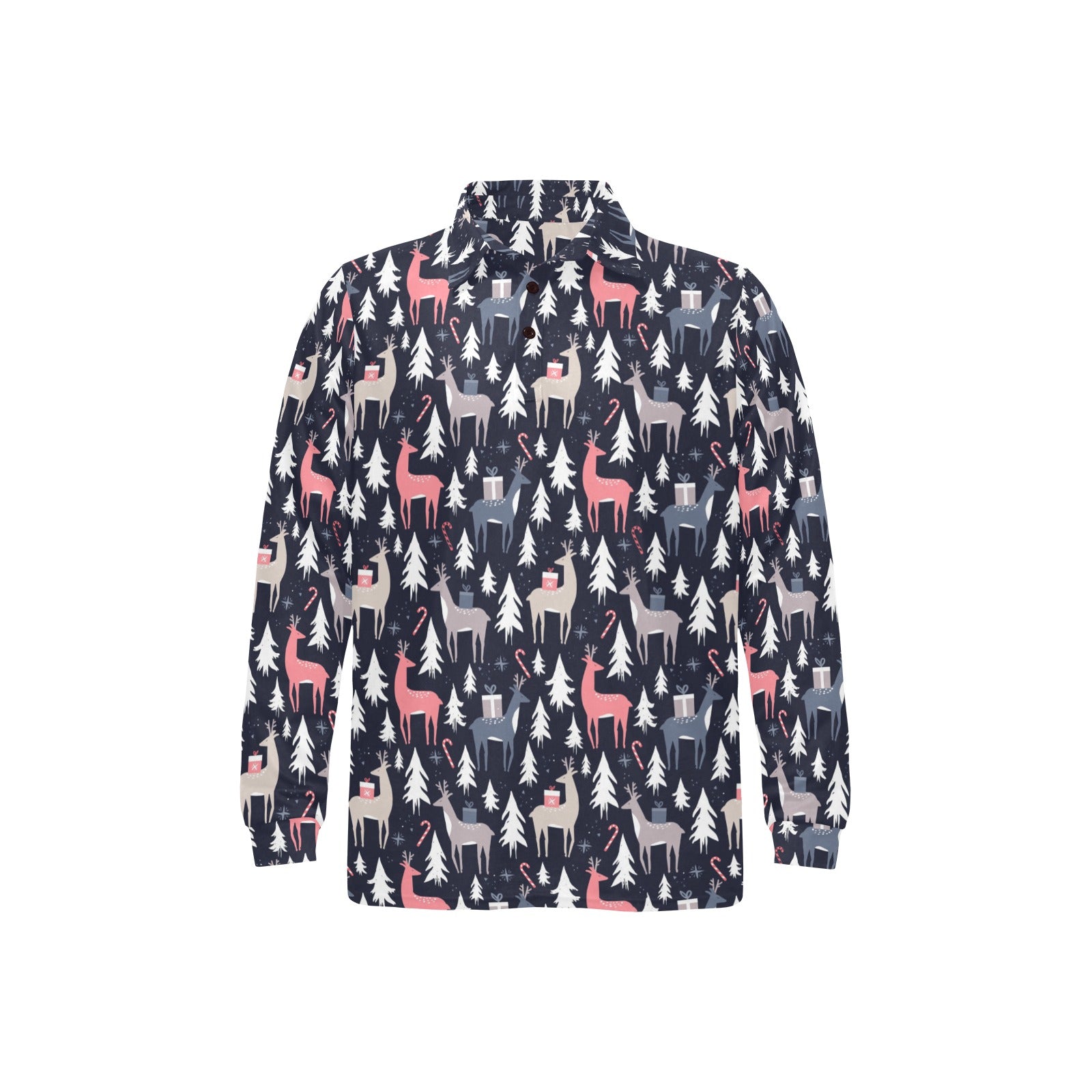Deers Winter Christmas pattern Men's Long Sleeve Polo Shirt