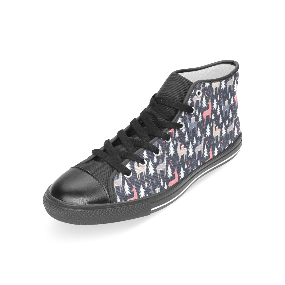 Deers Winter Christmas pattern Women's High Top Canvas Shoes Black