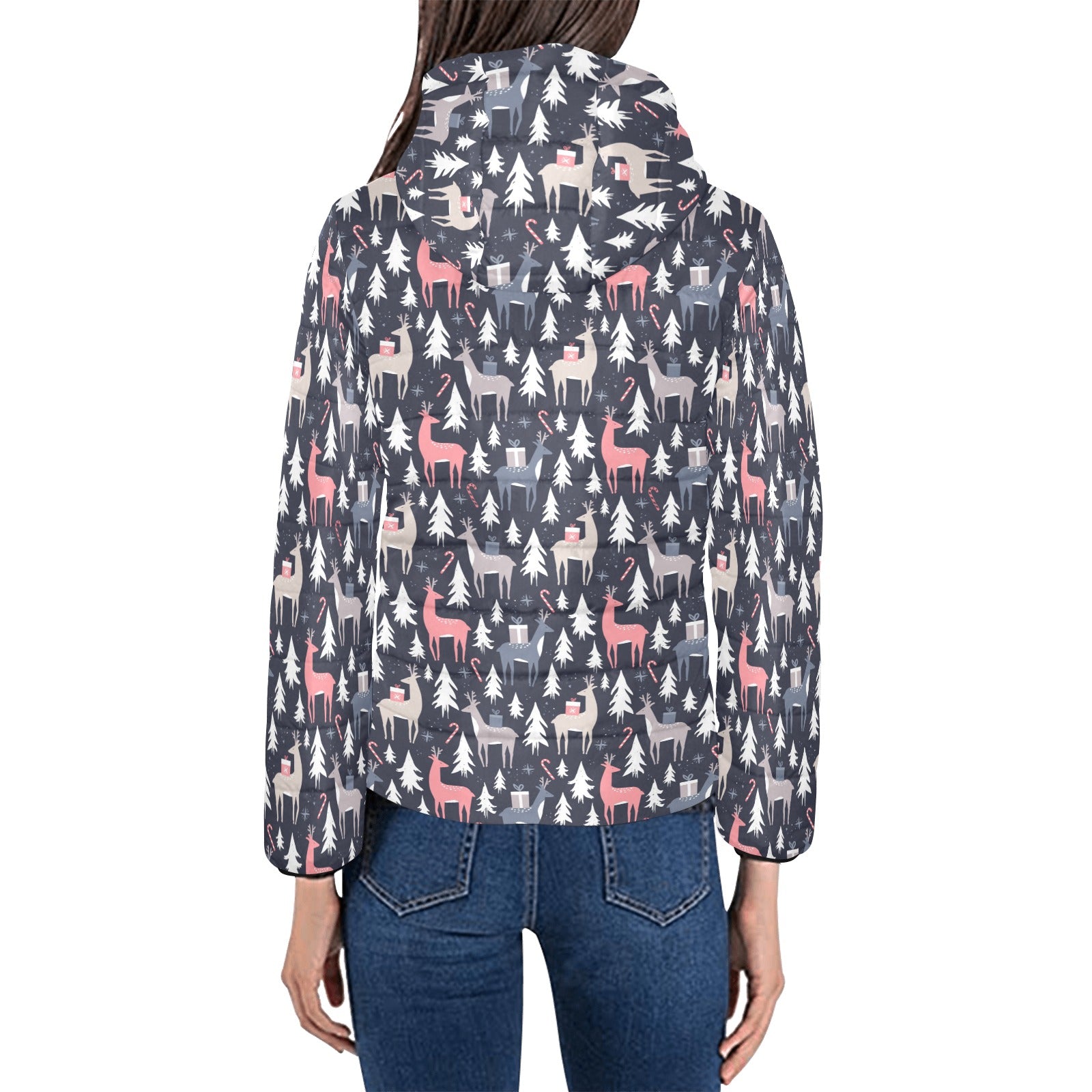 Deers Winter Christmas pattern Women's Padded Hooded Jacket
