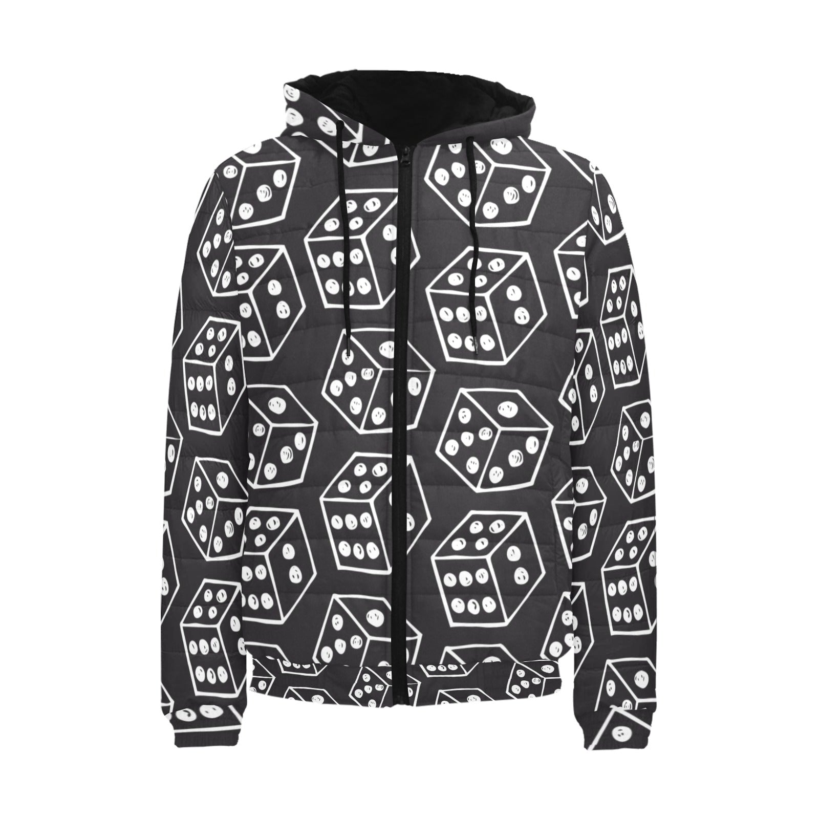 Dice Pattern Print Design 01 Men's Padded Hooded Jacket