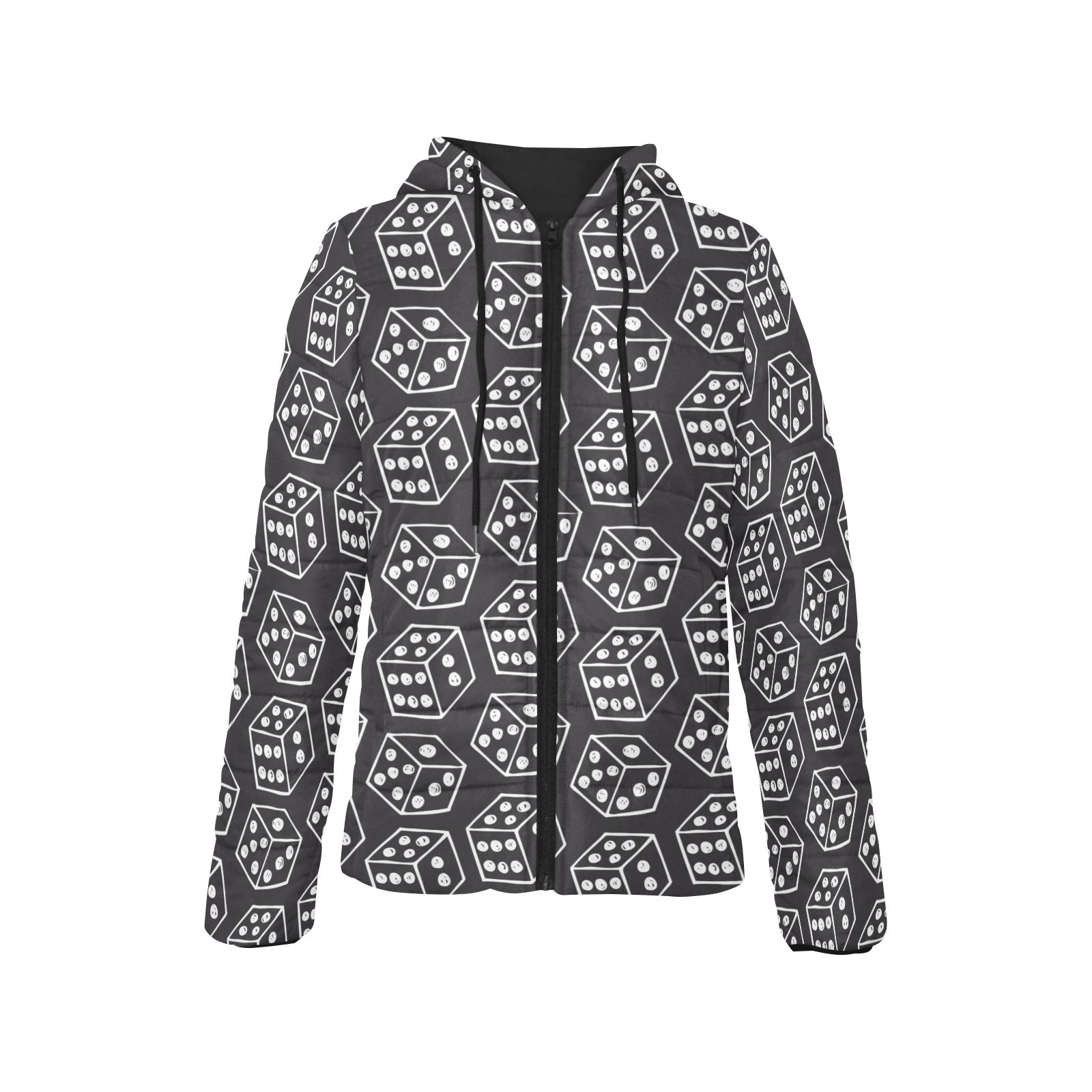 Dice Pattern Print Design 01 Women's Padded Hooded Jacket