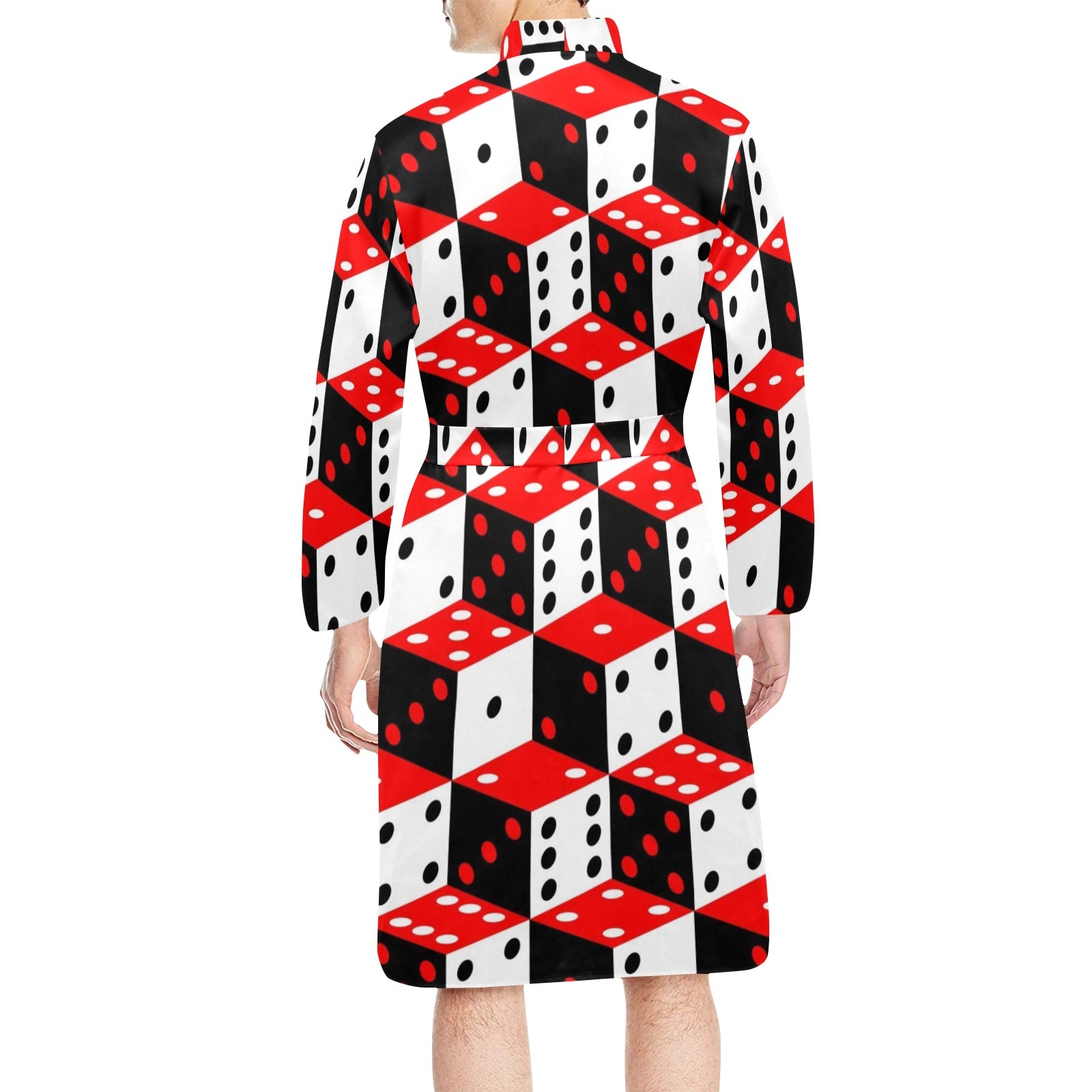 Dice Pattern Print Design 02 Men's Long Sleeve Belted Night Robe