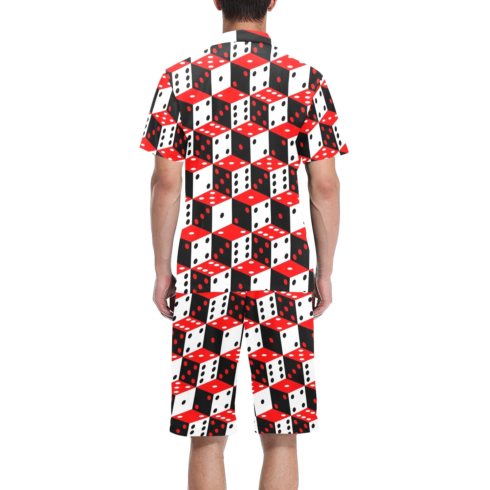 Dice Pattern Print Design 02 Men's V-Neck Short Pajama Set