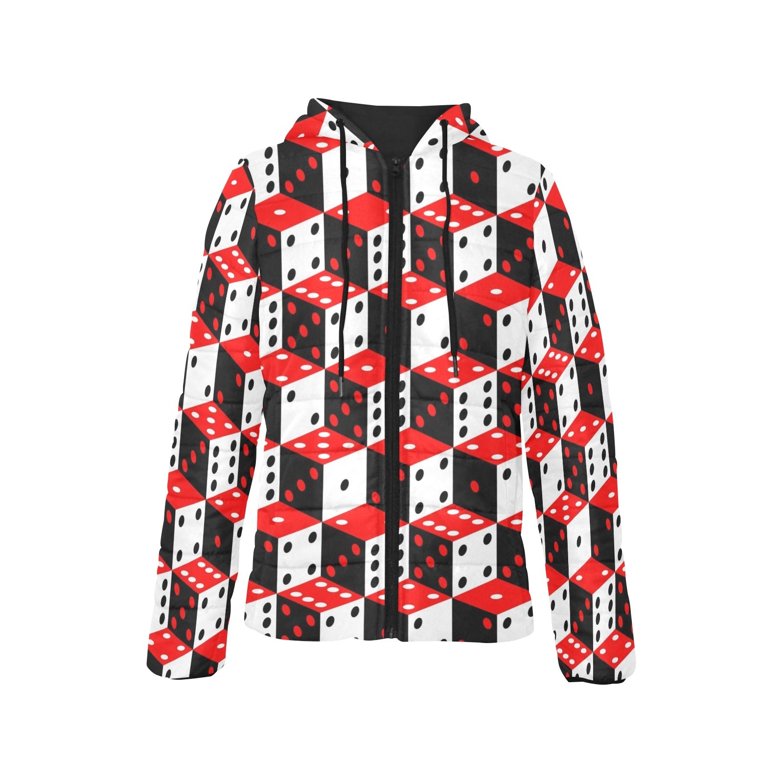 Dice Pattern Print Design 02 Women's Padded Hooded Jacket
