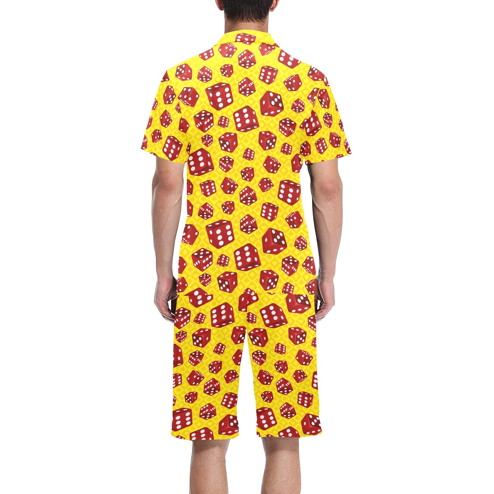 Dice Pattern Print Design 04 Men's V-Neck Short Pajama Set