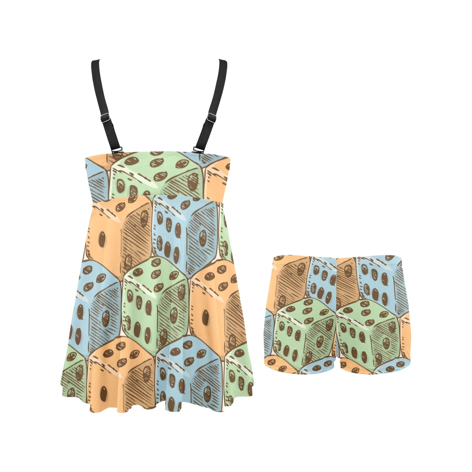 Dice Pattern Print Design 05 Chest Sexy Pleated Two Piece Swim Dress
