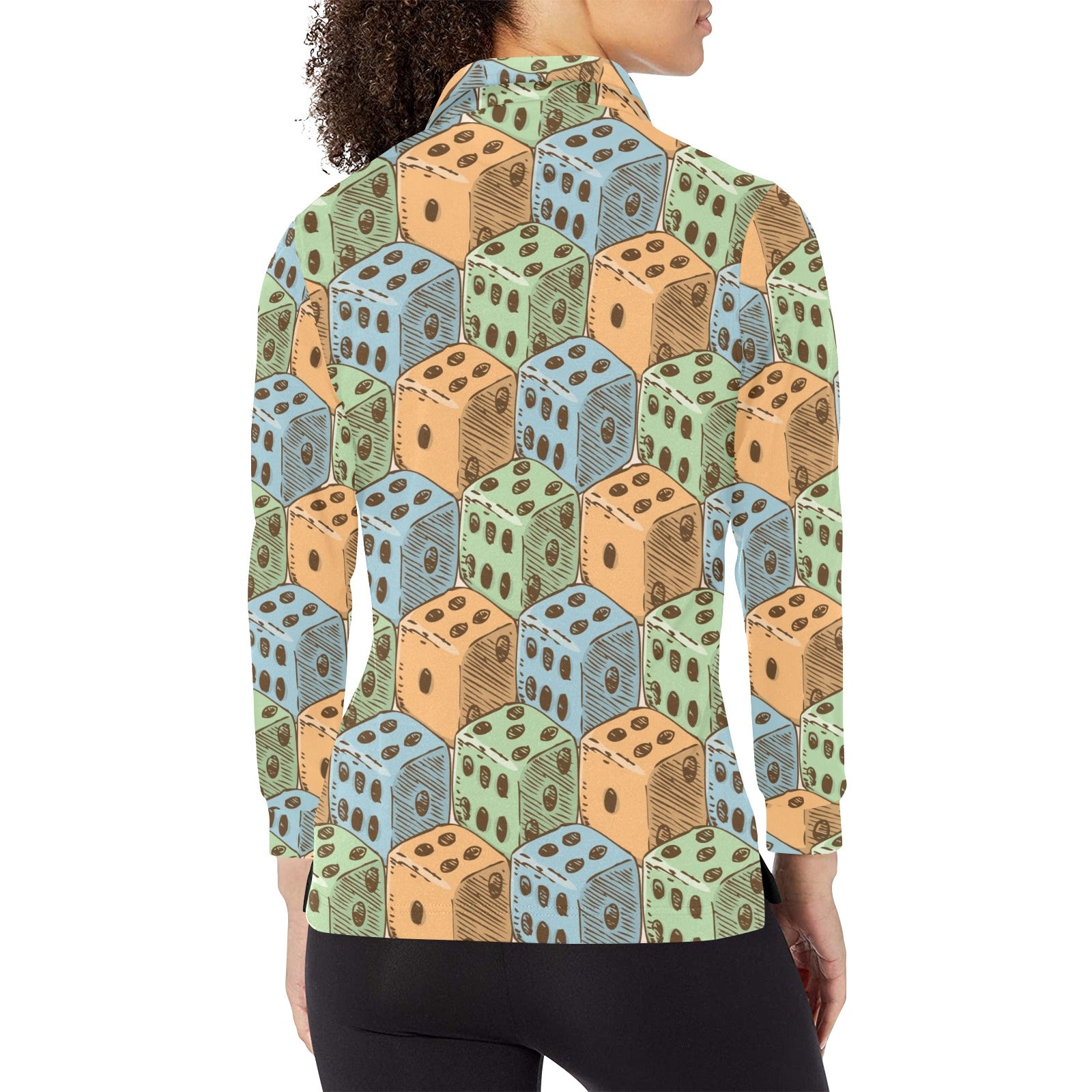 Dice Pattern Print Design 05 Women's Long Sleeve Polo Shirt