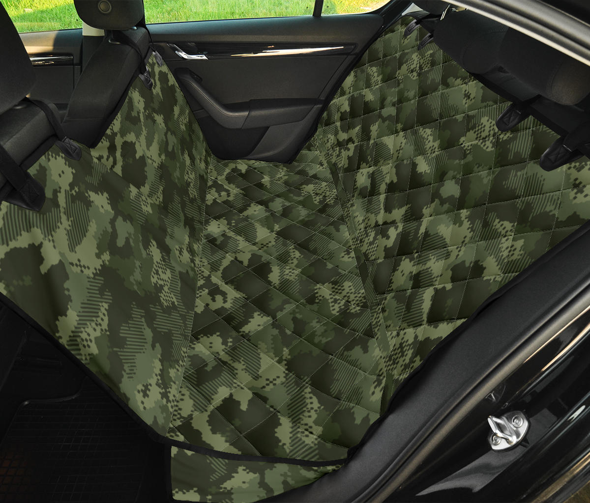 Digital Green camo camouflage pattern Dog Car Seat Covers is a uniqued design and limited item. It made to order, hand printed, and sewn with love in our factory.