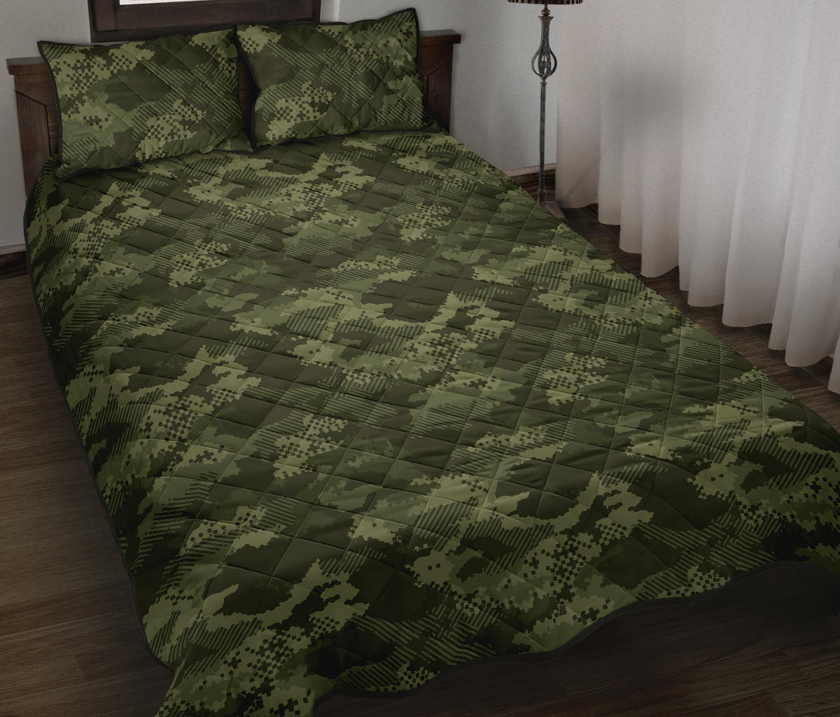 Digital Green camo camouflage pattern Quilt Bed Set