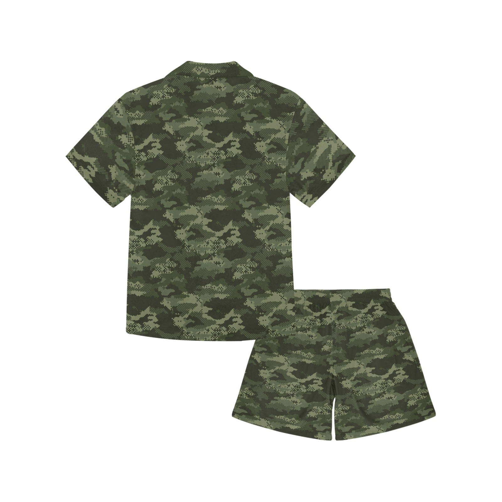 Digital Green camouflage pattern Kids' Boys' Girls' V-Neck Short Pajama Set