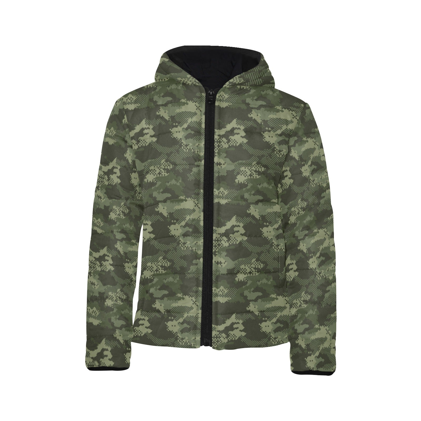 Digital Green camouflage pattern Kids' Boys' Girls' Padded Hooded Jacket