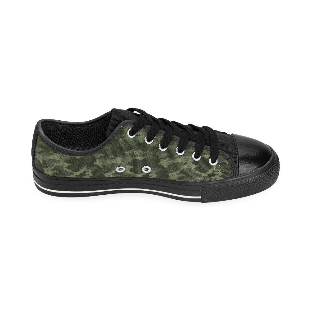Digital Green camouflage pattern Men's Low Top Canvas Shoes Black