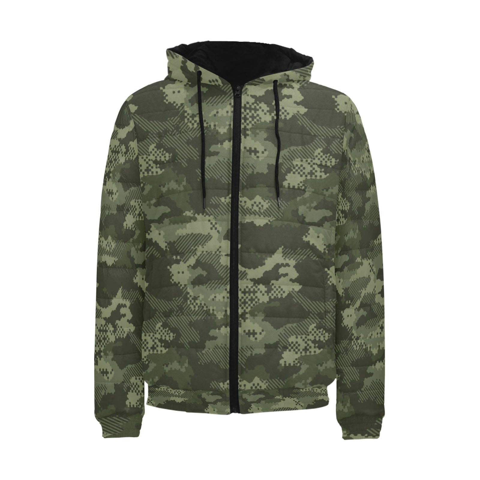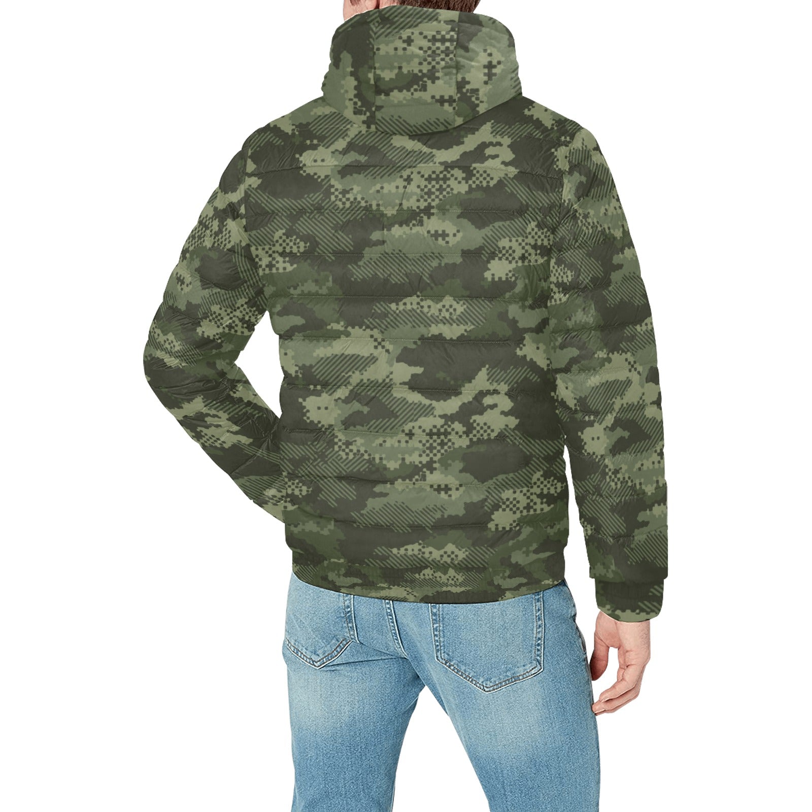 Digital Green camouflage pattern Men's Padded Hooded Jacket