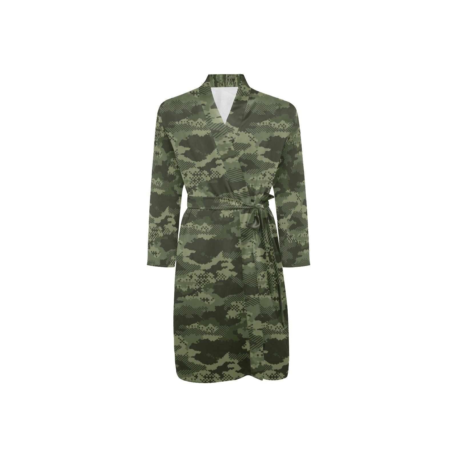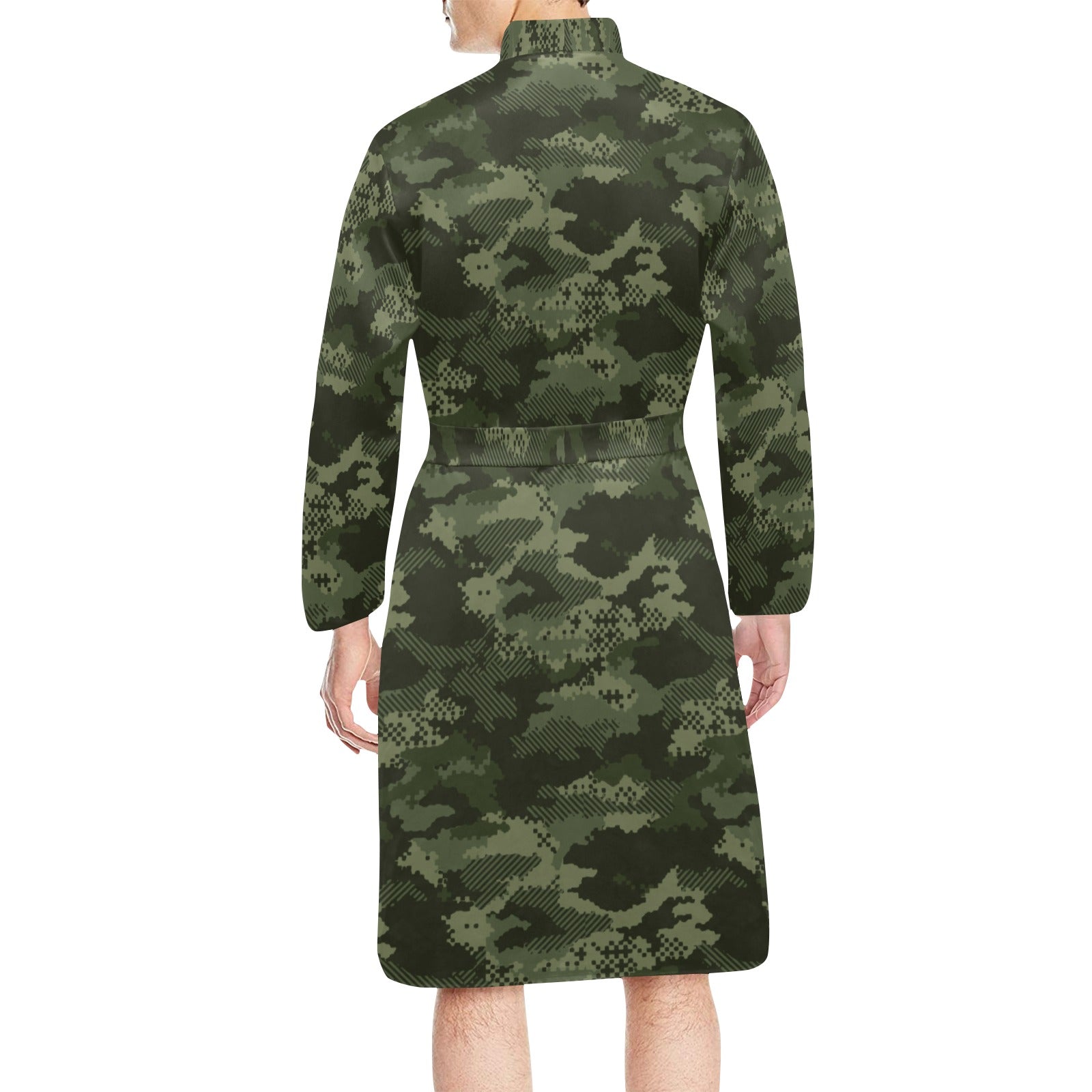 Digital Green camouflage pattern Men's Long Sleeve Belted Night Robe