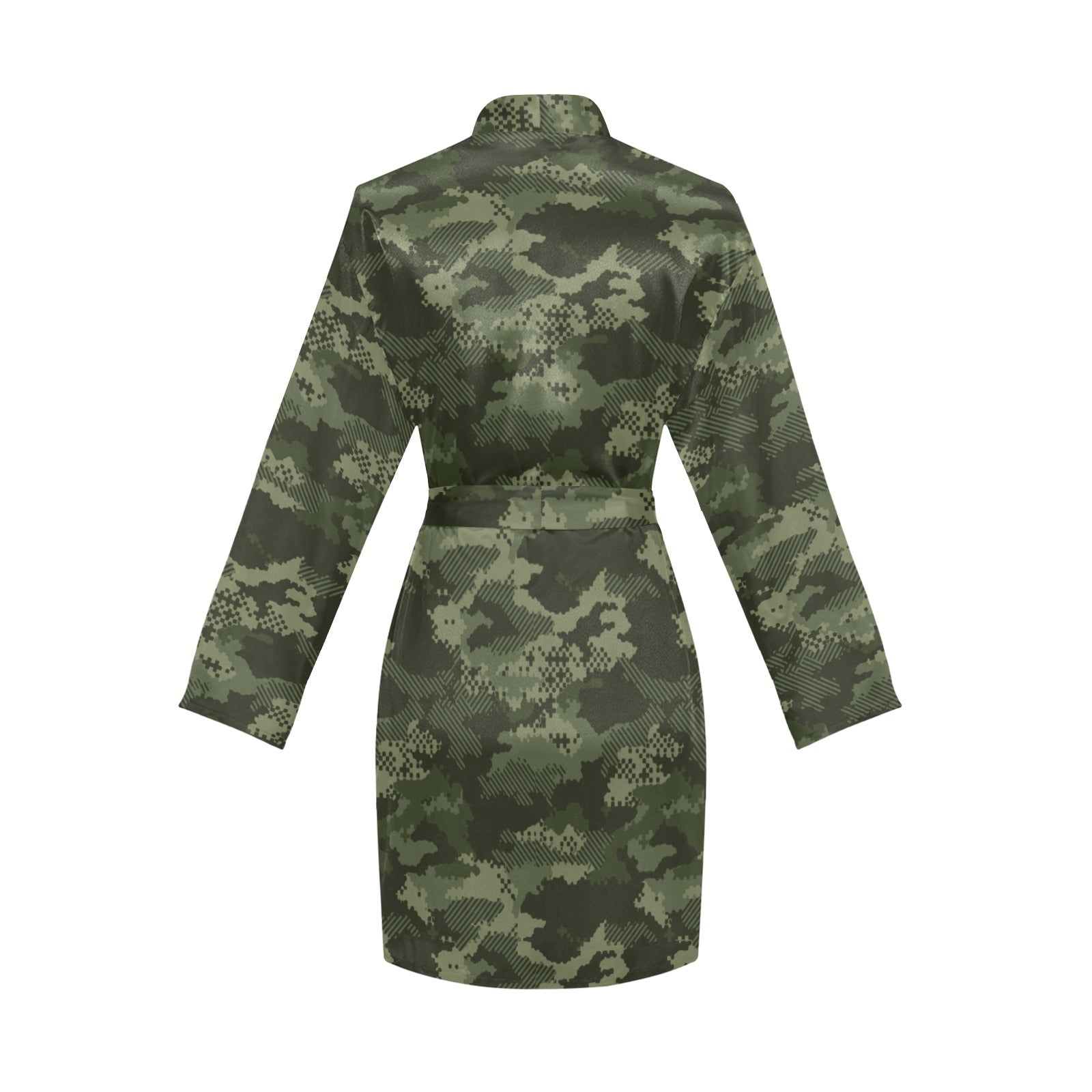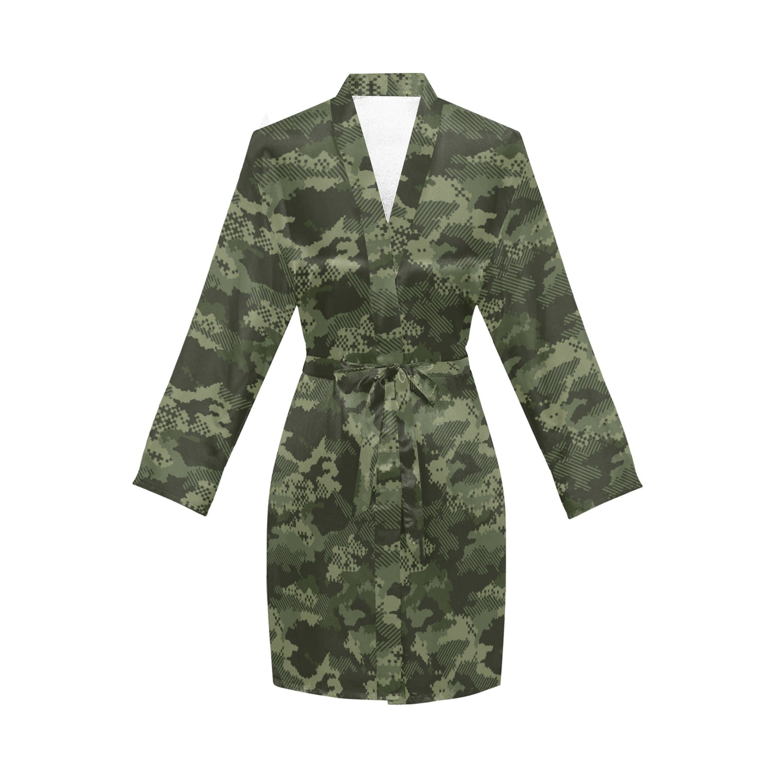 Digital Green camouflage pattern Women's Long Sleeve Belted Night Robe