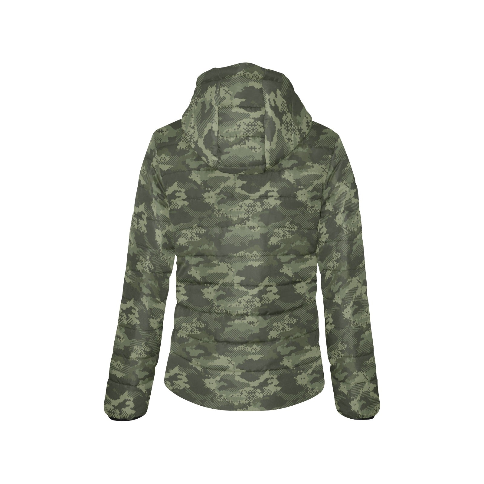 Digital Green camouflage pattern Women's Padded Hooded Jacket