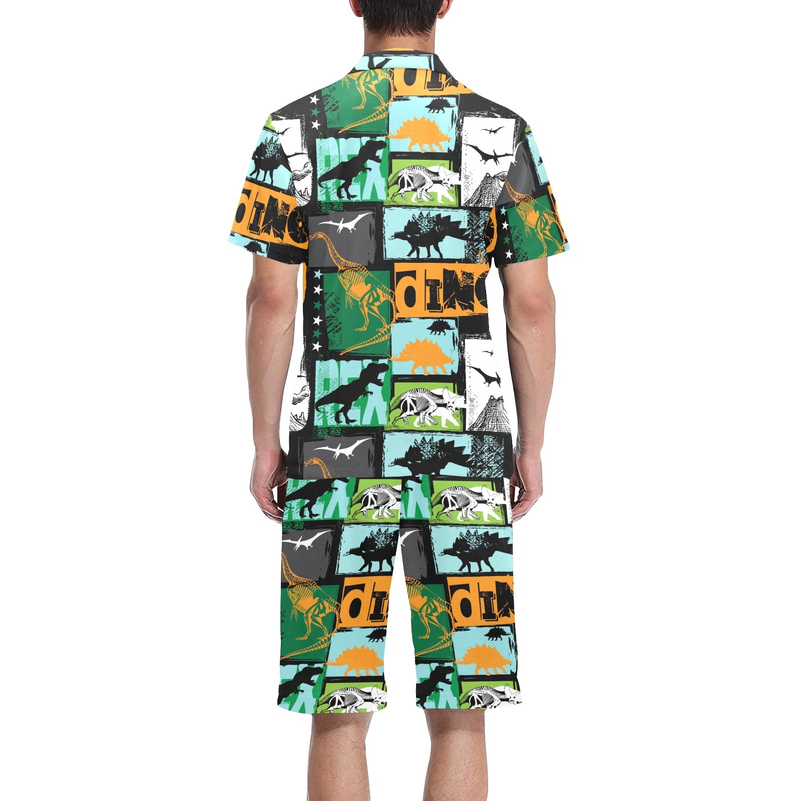 dinosaurs print pattern Men's V-Neck Short Pajama Set