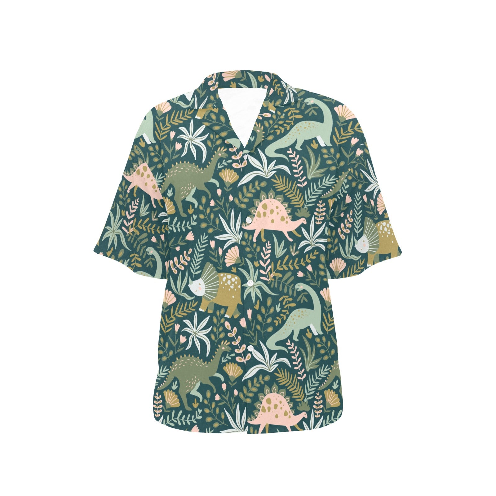 dinosaurs tropical leaves flower pattern Women's All Over Print Hawaiian Shirt