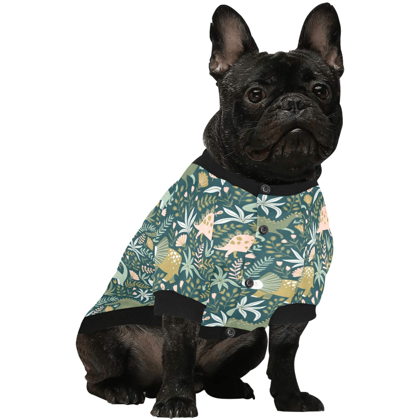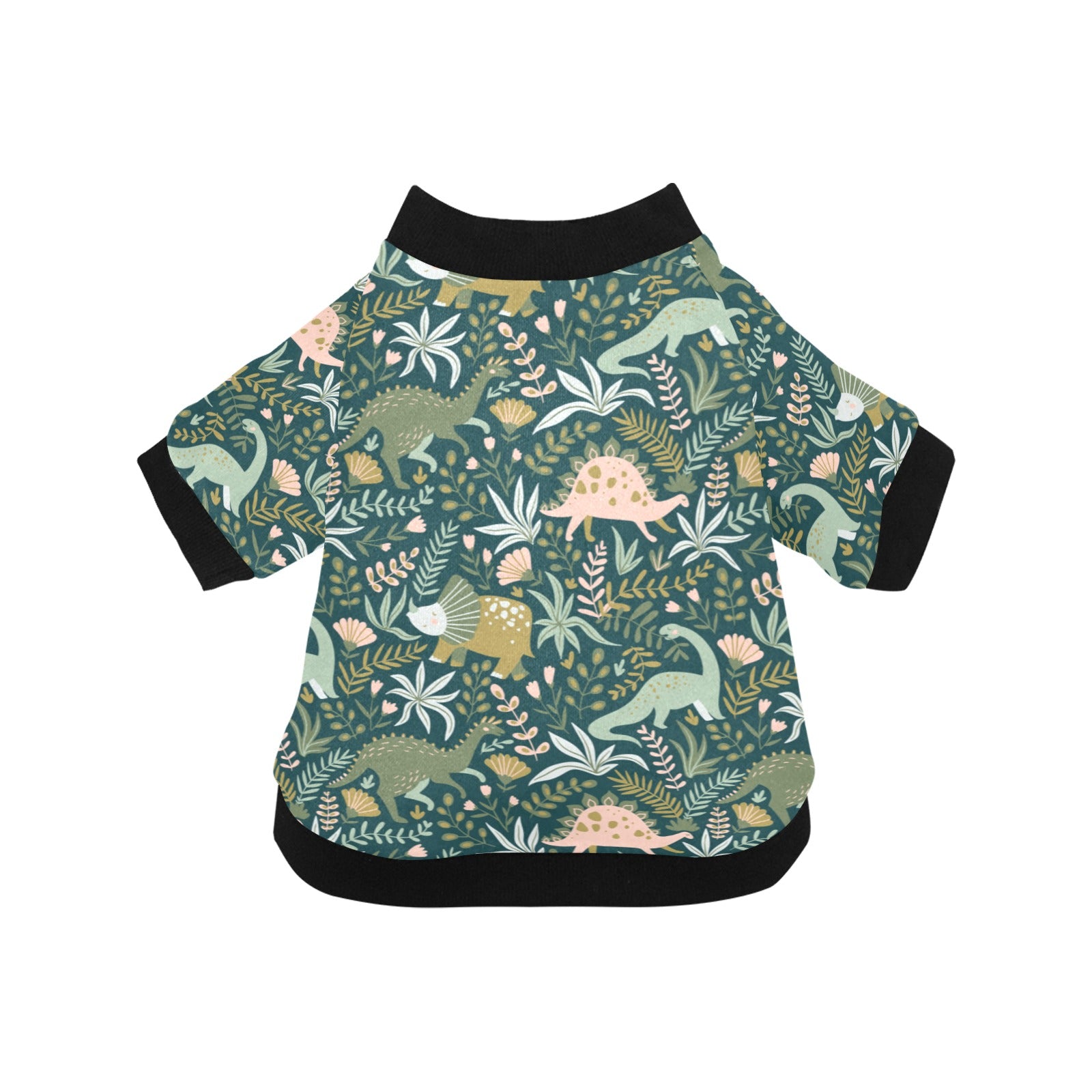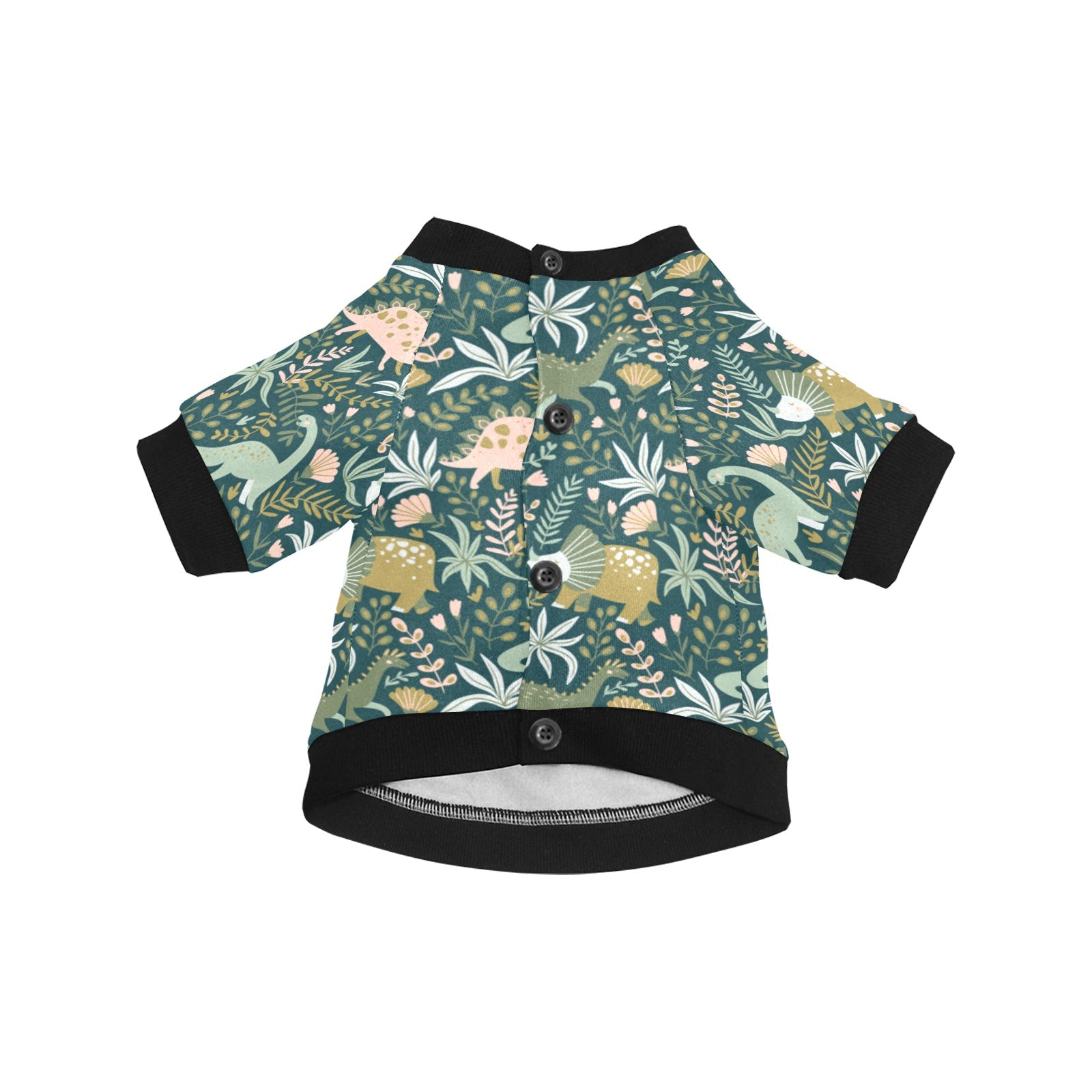 dinosaurs tropical leaves flower pattern All Over Print Pet Dog Round Neck Fuzzy Shirt