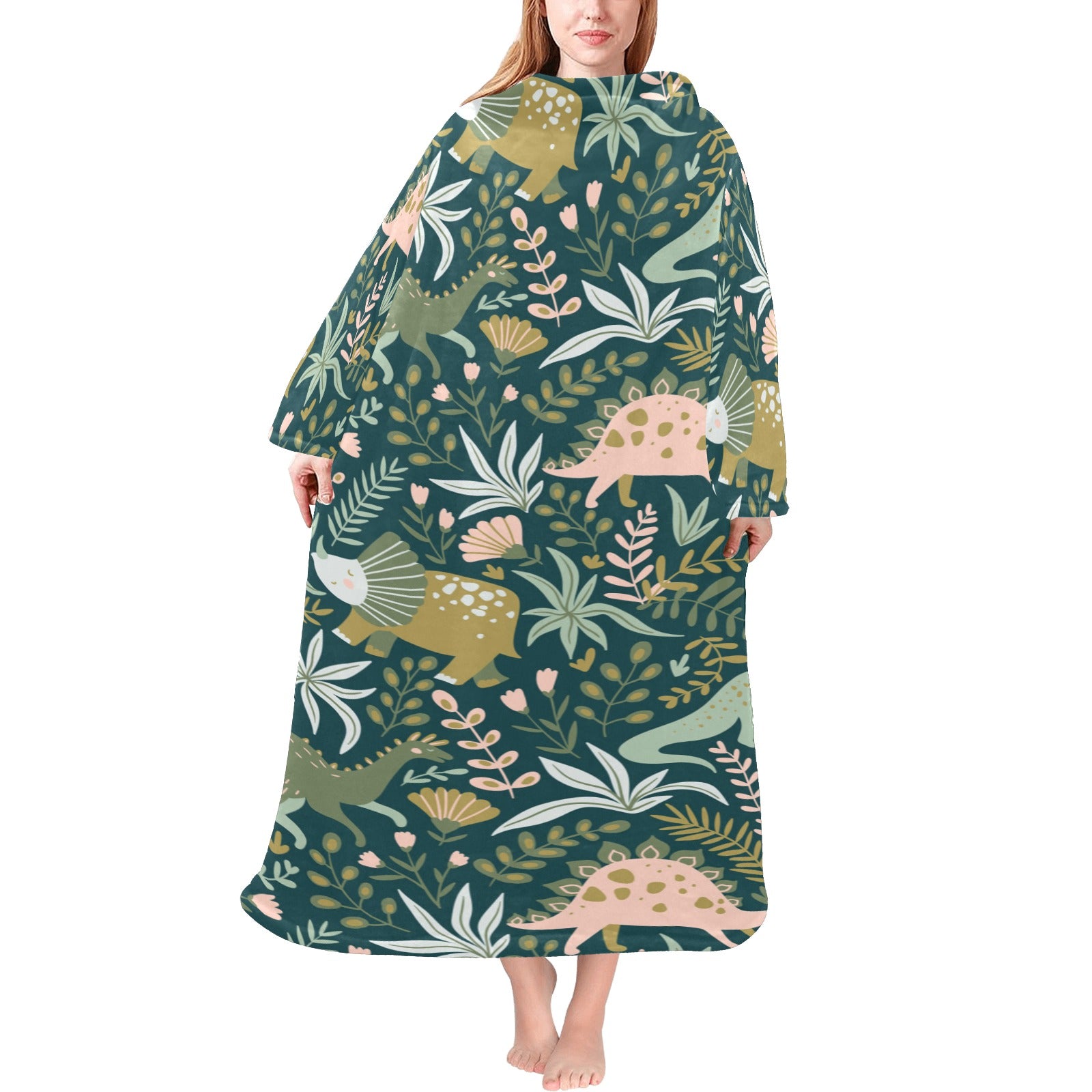 dinosaurs tropical leaves flower pattern Blanket Robe with Sleeves