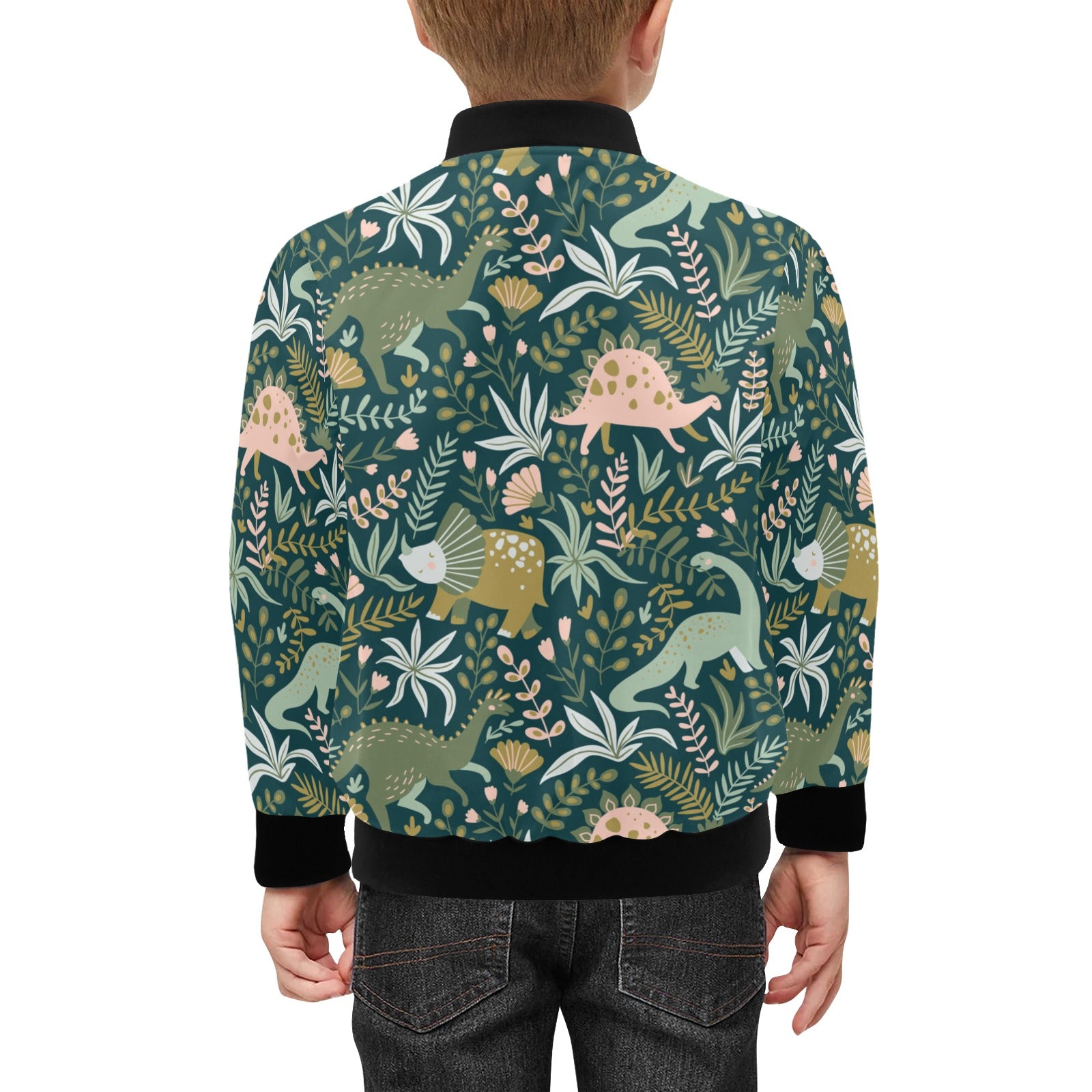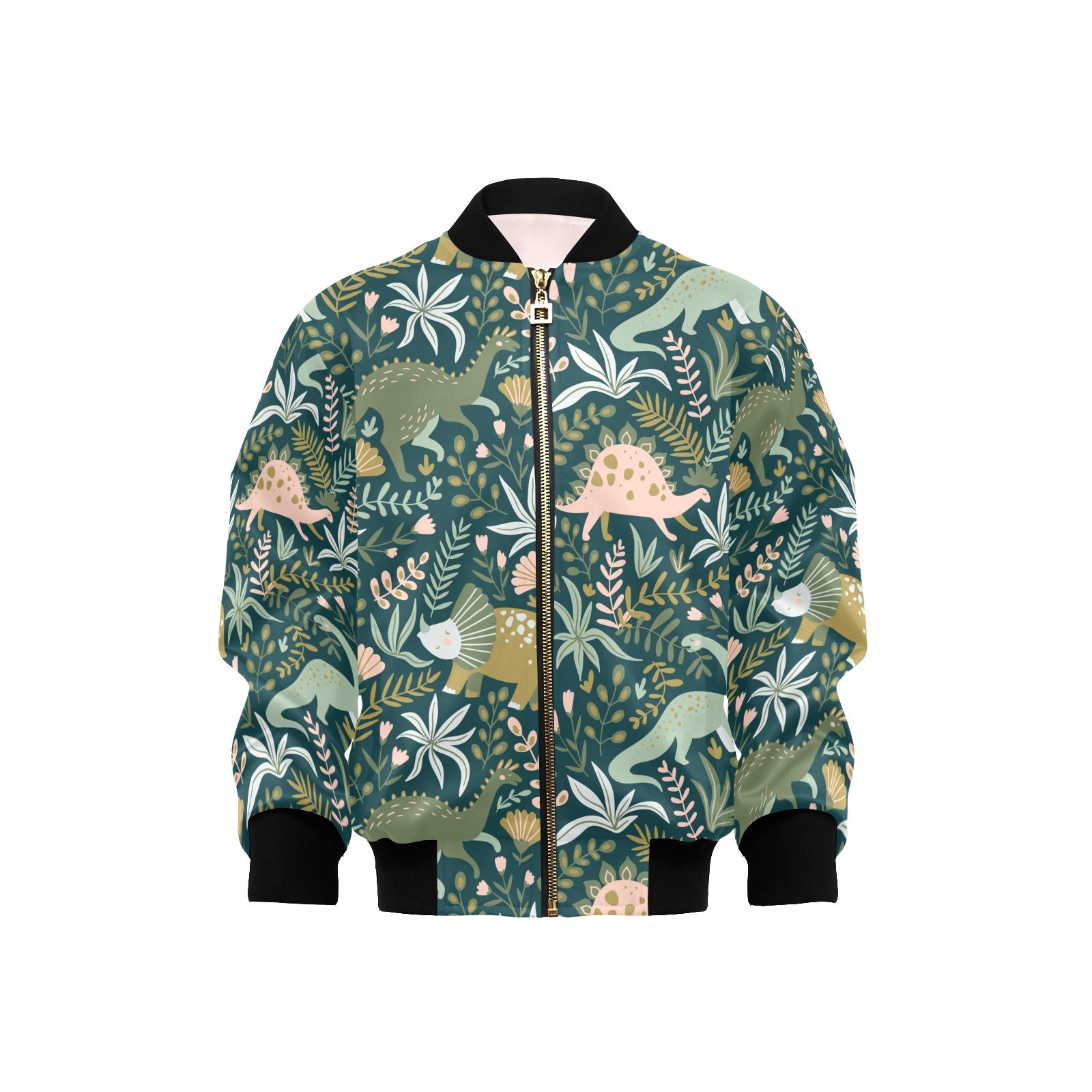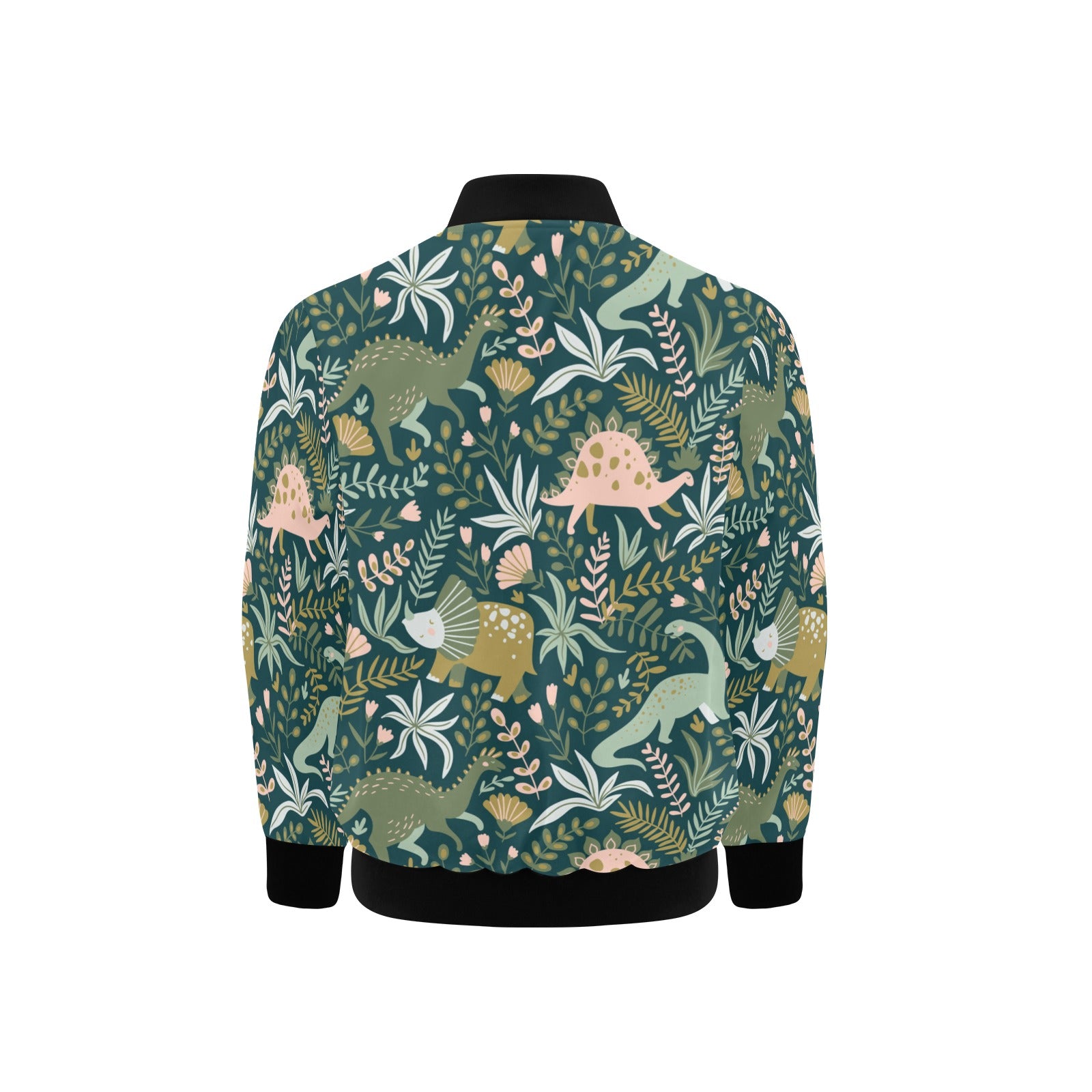 dinosaurs tropical leaves flower pattern Kids' Boys' Girls' Bomber Jacket