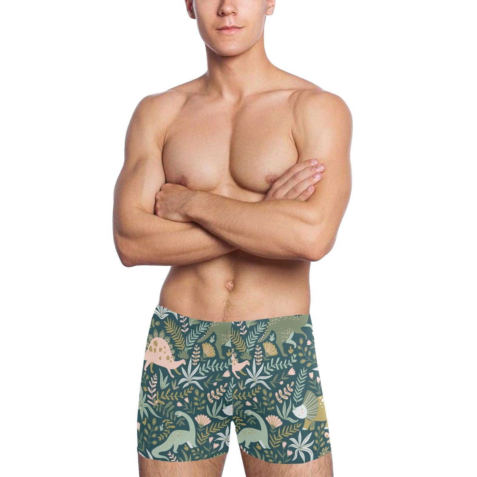 dinosaurs tropical leaves flower pattern Men's Swimming Trunks